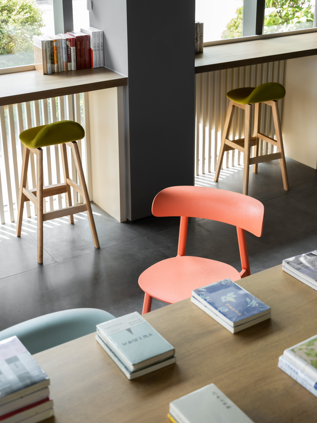 位于安吉慢谷的小象咖啡屋是一个慢生活邻里社群的聚集地,门口放置了Jenga Cabinet猫柜,随时欢迎着猫咪来做客。色彩各异的Yǎng Chair是书桌、餐桌前的主要坐具,与不拘一格的空间色彩运用相得益彰。Pat-Pat Stool与20° Coffee Table则提供了另一种富有趣味的落座体验,也适合小朋友们在此阅读、学习。