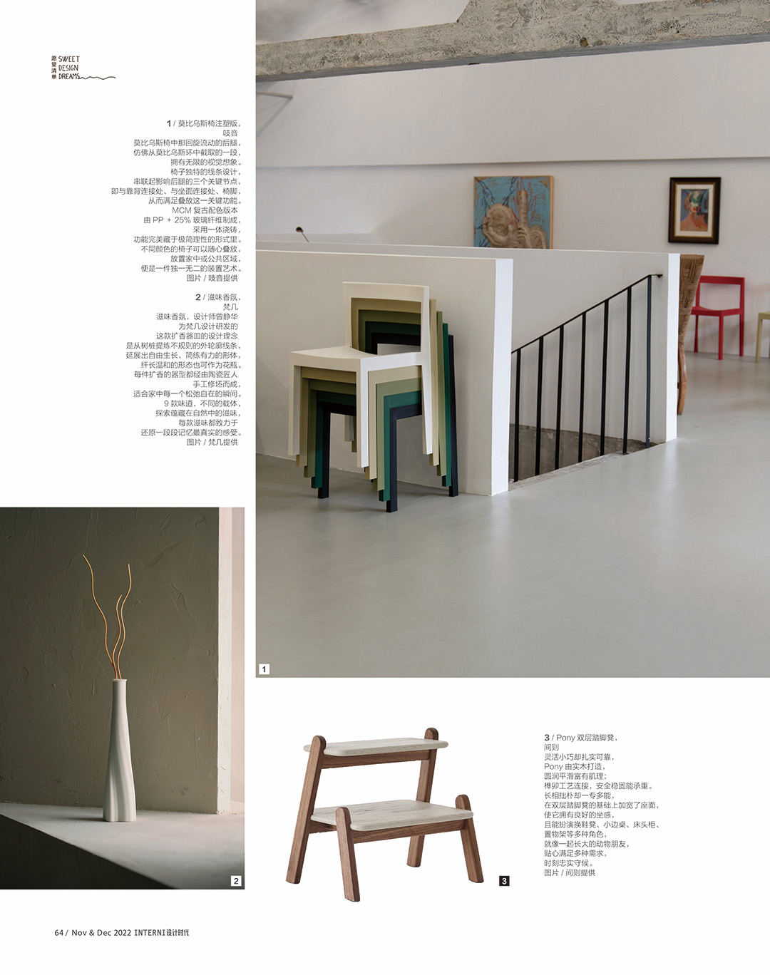 在间则的原创设计作品Yǎng Chair与Pat-Pat Stool入选《INTERNI》2021年度「愿望清单」后,Pony Step Stool也被收入2022年的「愿望清单」。