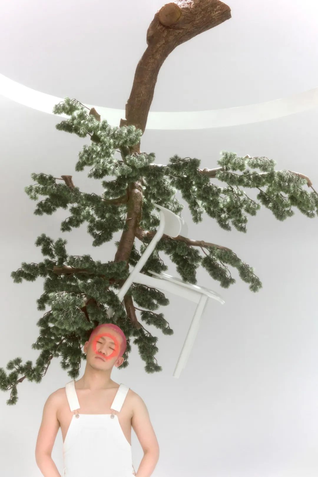 有趣的是,相较于设计的“隐身”,由Chow 为“间则”所拍摄的广告则极力捕捉观众的凝视。Yǎng Chair 既可以倒挂在树上,也可以在“星际办公室”的基地里闪现。无论是“两栖动物”中的不断裂变的真身 ,还是“恋物”里人猫互换的游戏,这种突破传统家具呈现形式的广告,被陈旻认为是一种二次创作。拿到图片的Christoph 同样惊讶于这种大胆张扬的拍摄手法,强对比的色彩虽然给他的排版设计带来了挑战,但色彩之间的冲突,也能撞击一种平衡。对于习惯于实验、概念、即兴的荷兰人而言,这并不是个难题。