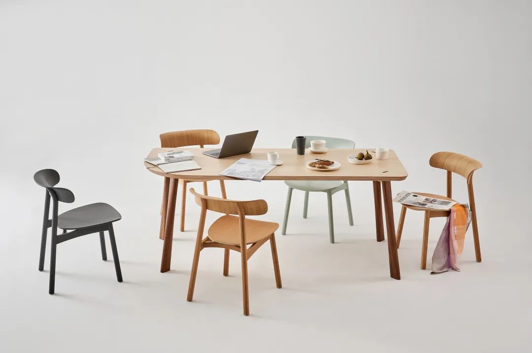 弯腰捡拾,反身聊天,侧坐倚靠或搁起双臂,年轻人的小习惯都被这把椅子完整识别。Yǎng Chair 宽大的靠背呈环抱之势,成为“久坐”知己,人与椅的互动,来自于对家具的信任感。这把轻盈的“仰”椅也获得了2021年德国设计红点奖。