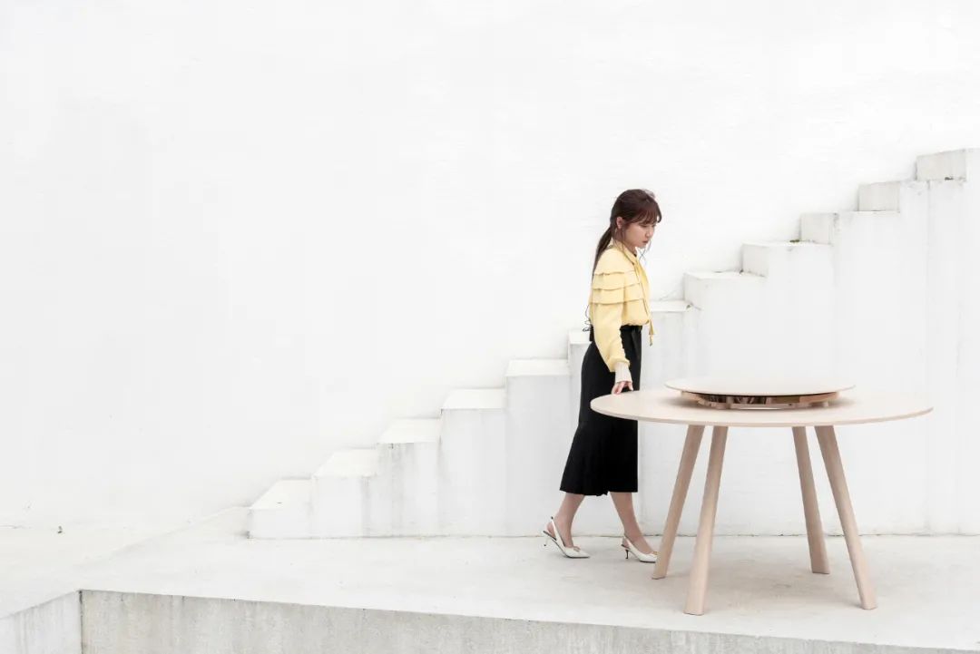 Bea 本身也是一位“猫奴”,她是第一位爱上这件作品的人。就像广告中的组图,少女在地上匍匐,猫反而站在了顶端,互为他者,才成为彼此。猫看到想钻,人看到就想放东西。陈旻坚信,好的设计能够融入生活,它能隐身于空间之内,又因细节闪闪发光。