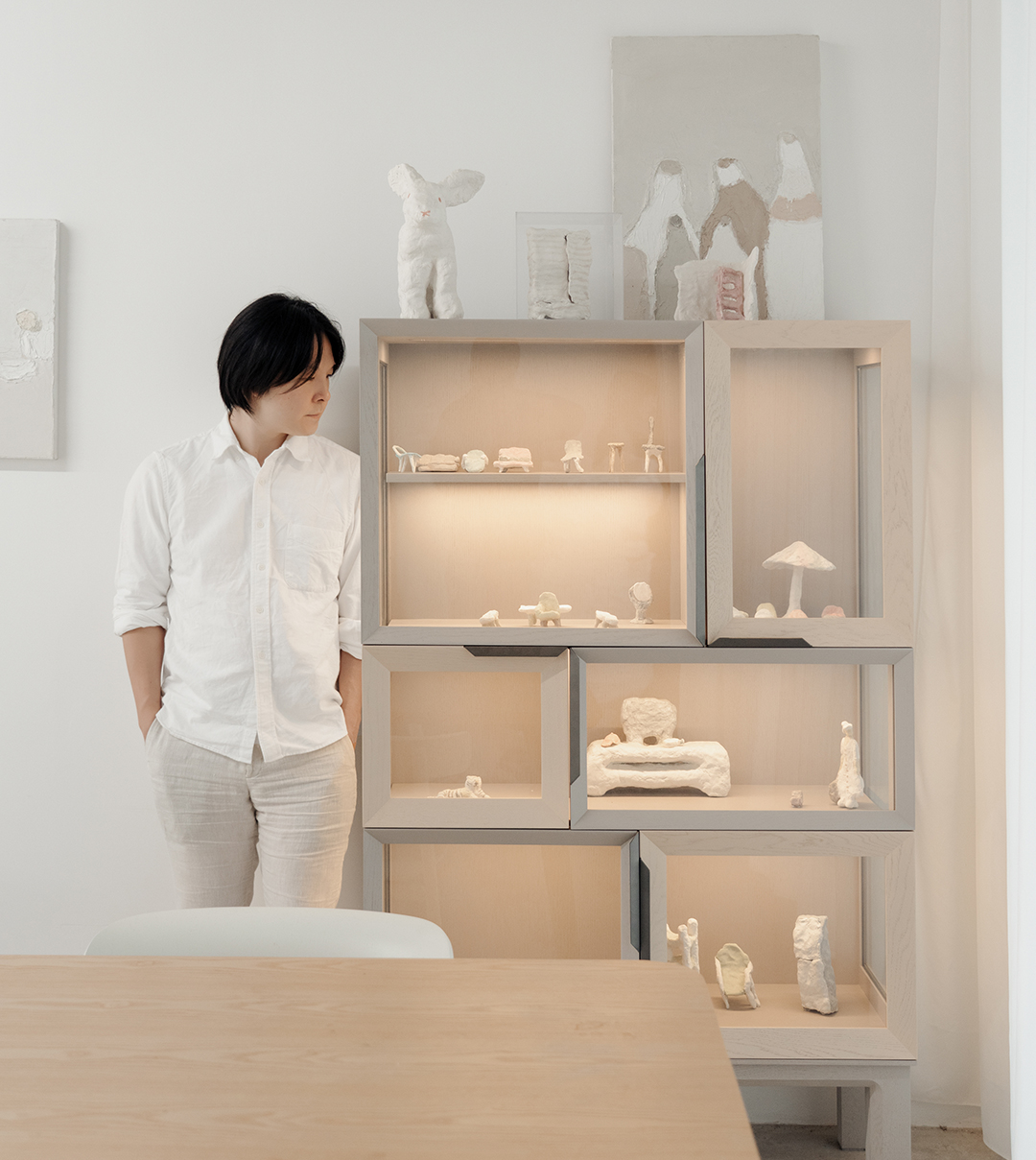 A:Moments Showcase很适合放我的泥塑作品,建筑式的造型像是我的空间里的一个小空间,不同房间都有灯光,同时又是一个展示小家具的家具。