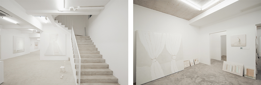 全局的留白,与冯玮的作品适以相成。村里格外安静,落地窗前是空旷的草坪,拉上窗帘就是一个完全白色的密室。在这个基本没有干扰的时空,创作者与观赏者都能够更加专注于各自的当下。