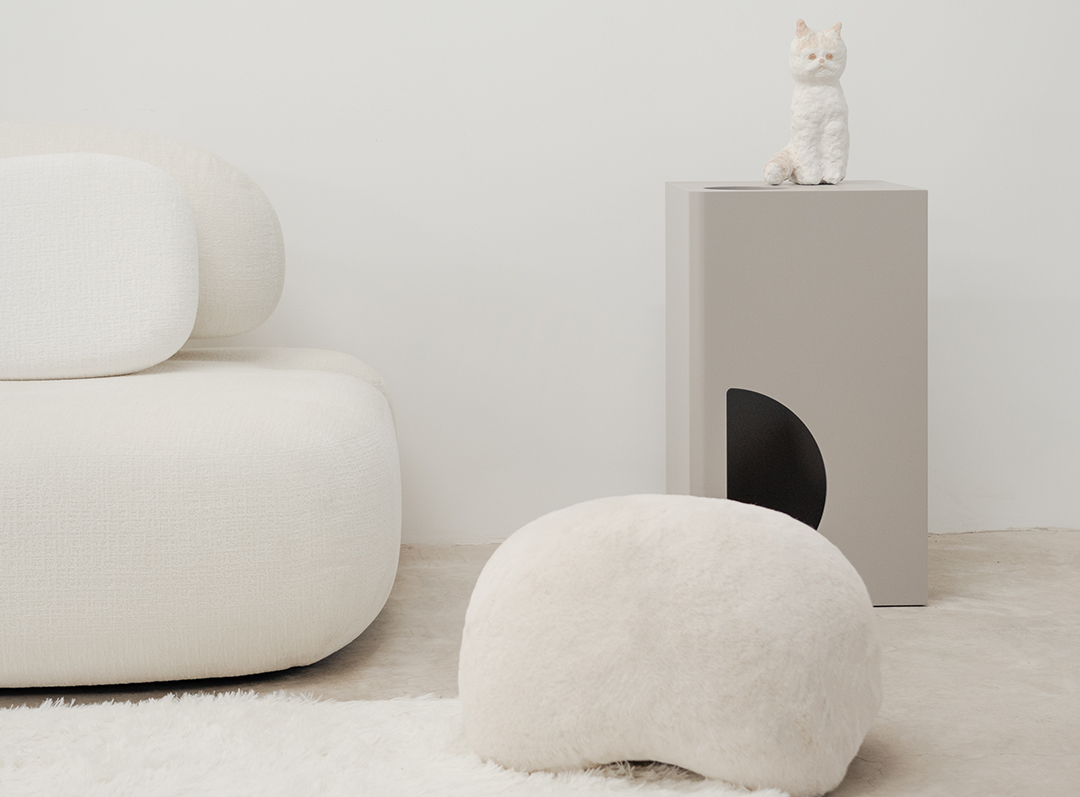 Pat-Pat Stool:给人第一感觉有点像某种圆滚滚的柔软动物,但是又说不出来是什么动物。它很容易跟人贴近,自带温度。奇特的造型让它可以独立存在于空间内,像一个可爱的小型艺术装置。