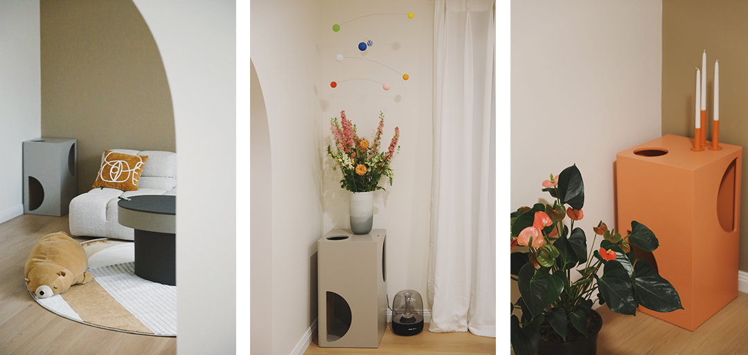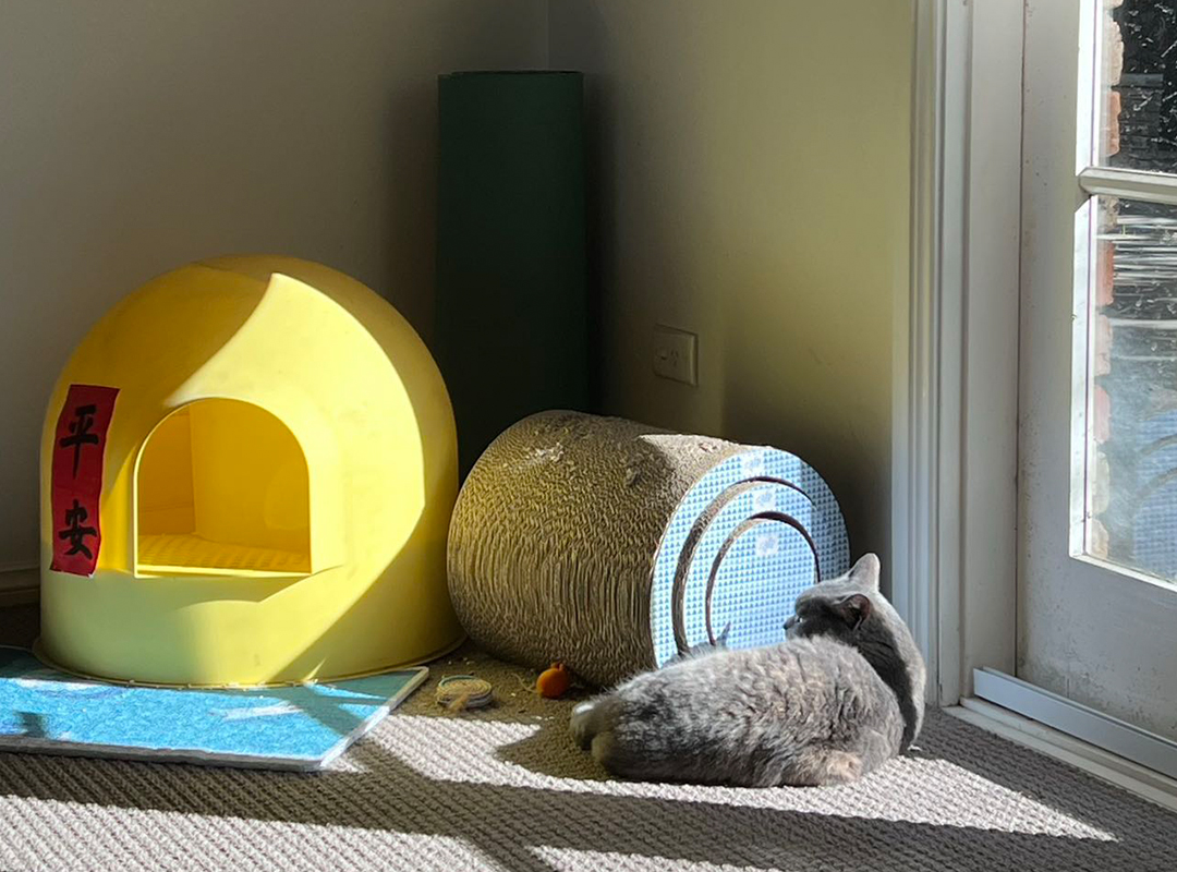 对于灰米来说也是,不用特意设置猫过道或是墙面猫爬架,而是把她的各种玩具、日用品,分布在每个角落,她就会比较“自信”,可以感受到她也是整个家的主人。
