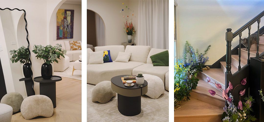 A:我会建立季节和空间的联系,常换常新,以探索最舒适的应季生活。除了替换不同主题的挂画和家居摆件,最直观的就是鲜花了。它们最能反应季节,再搭配特别的器皿,常常能让空间的氛围随之耳目一新。