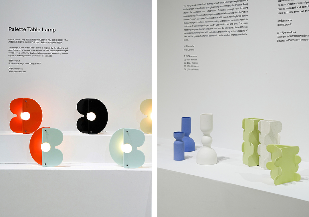 在这个仅展示Qiáo系列的空间中,观众可以通过这两段话理解设计师的核心初衷,再结合现场的排列,直观地体会设计的巧妙之处。