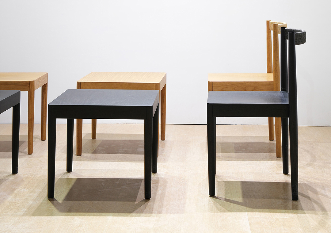 由芬兰设计师 Ville Kokkonen为间则设计的Qiáo系列,椅子与茶几的锥形腿部通过榫卯工艺与薄木板紧密相连,塑造出简洁的外观。当它们搭配使用时,能够呈现出流畅的视觉效果,也为对话创造了轻松的氛围。