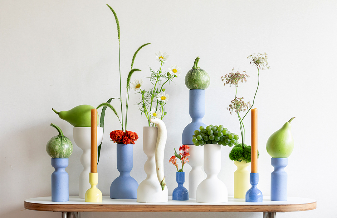 Hans觉得Rong是一个非常有“可塑性”的器物系列,花瓶、烛台、软装摆件甚至是积木,不同的颜色、大小、高度与功能,为花艺提供了非常友好的操作空间。
