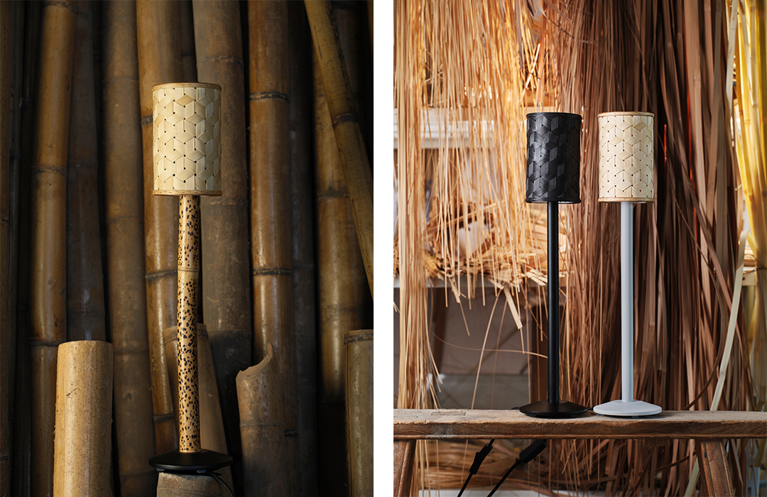 作品由 Ville Kokkonen 担纲设计,整体造型保持克制的简洁。利落的圆柱形态与竹编纹理形成一种精准的对话,在现代语境中重新激活传统技艺的生命力。