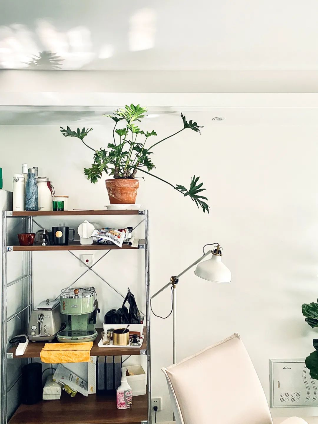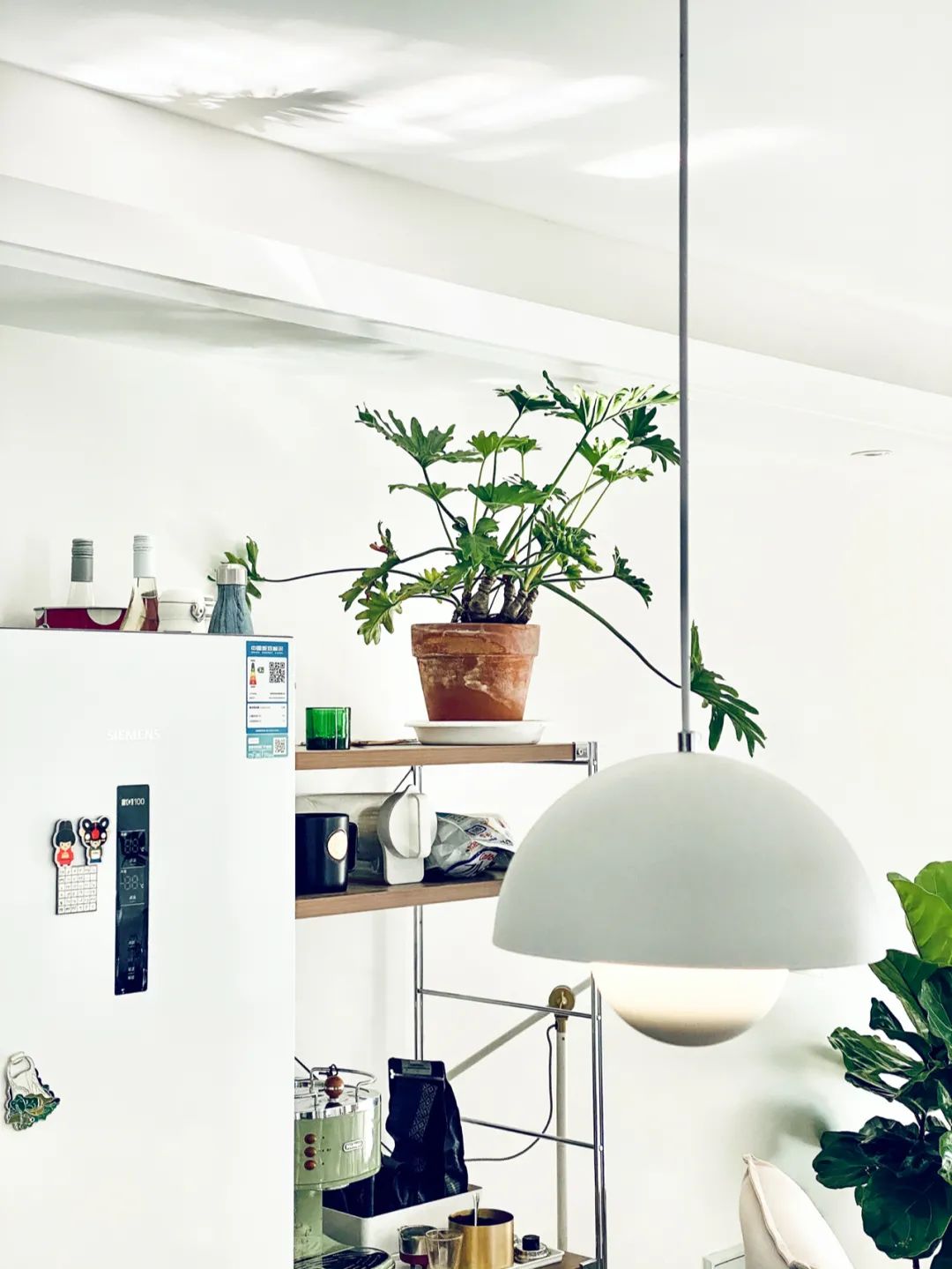 咖啡角也是我喜欢的地方,有植物,有咖啡,还能随手拿起一本书。夏天阳光特别好的时候,还能透过推拉门看到一整个阳台的植物。