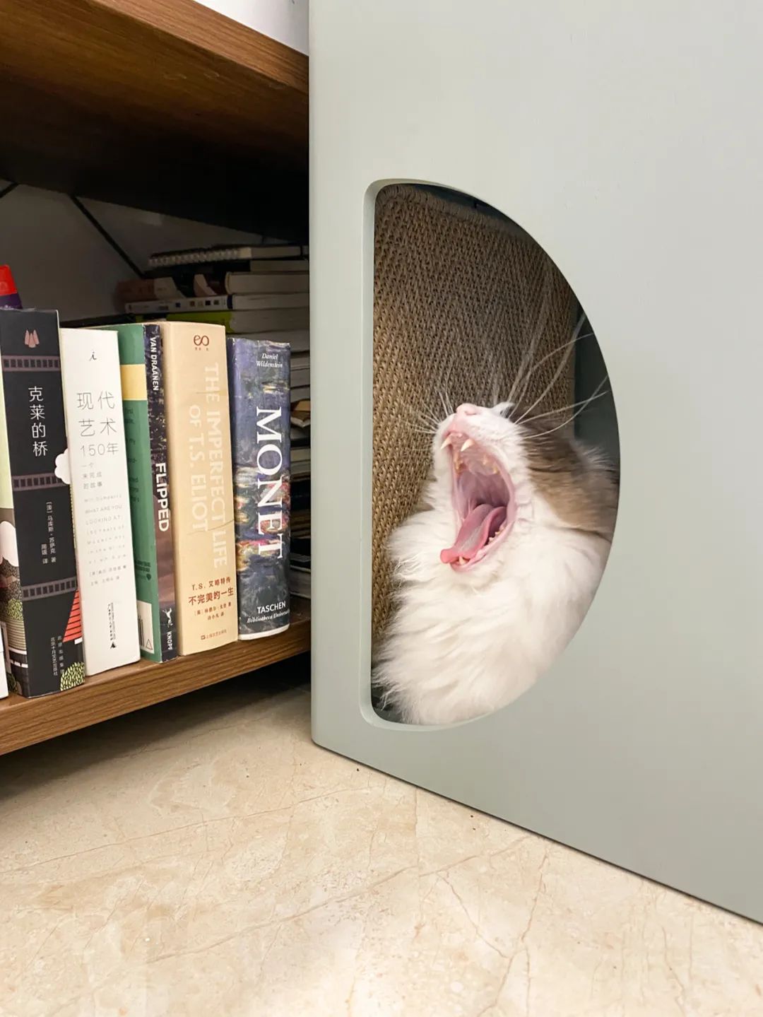 家里的家具也会根据他们的行为做调整,比如喜欢钻洞,就多一些隔板类的家具,比如喜欢磨爪子,尽量选一些厚实的材料或准备一些猫抓板,比如喜欢趴在高处,就干脆把冰箱搬出来让他们跳上去。总之就是乐趣更多了,像两个家人一样。