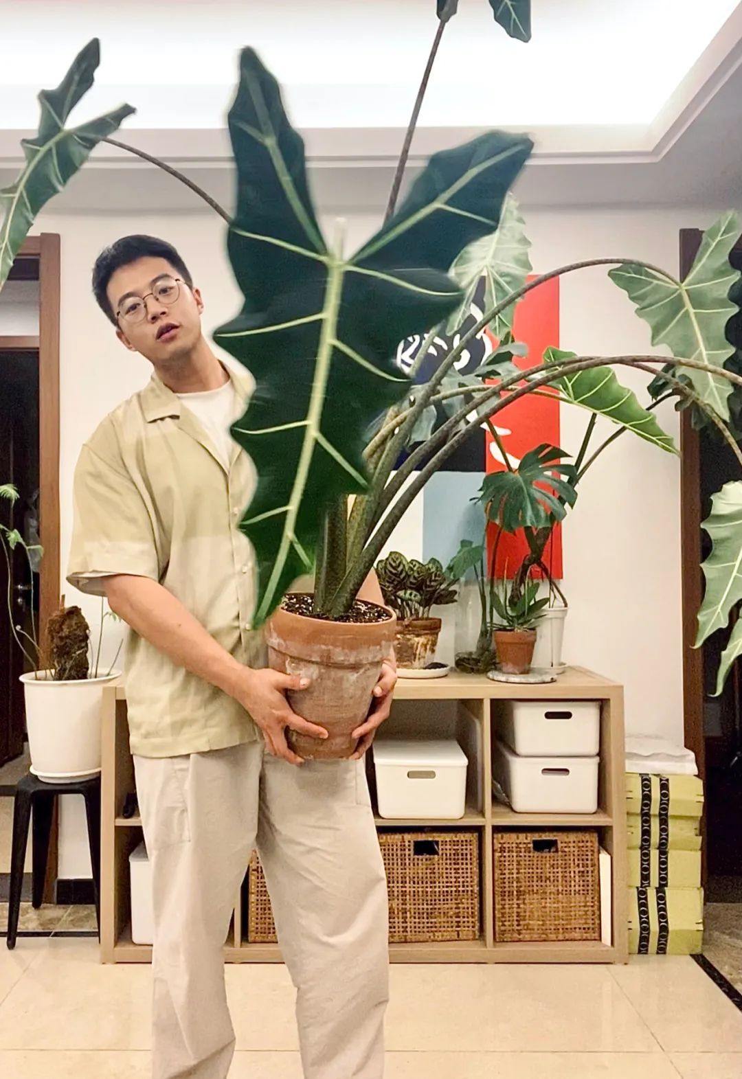 毫不夸张地讲,现在我家目及所处都是植物。自己和植物的关系其实和家居有点像,也是不断尝试的。不同植物也是有不同习性的。要找到自己养起来最舒服的植物,我原来养过多肉、月季、铁线莲、秋海棠,现在疯狂迷恋花烛这些。与其说是植物点缀了家,不如说是点缀的生活。