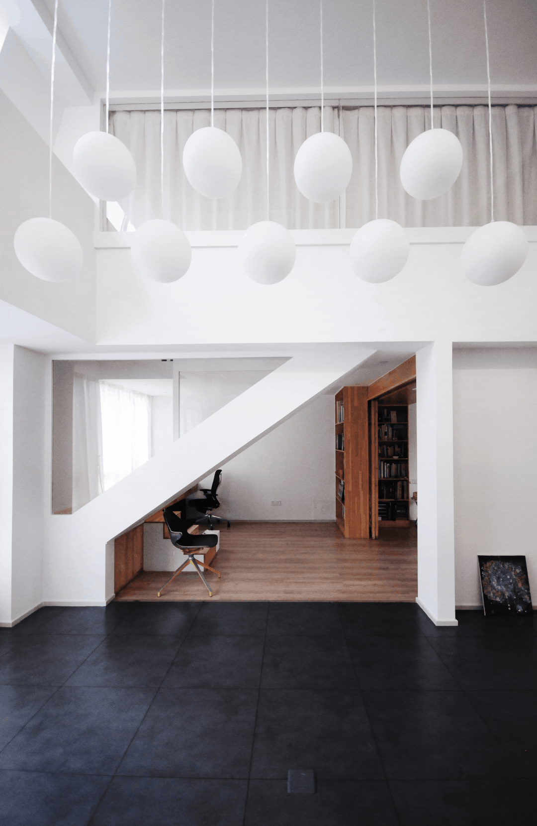 2017年,Chen Min office 搬到了这处位于云栖小镇顶楼的复式单位,并用时6个月完成了设计和装修。整个空间横亘在二楼的两条横梁局限了对空间的规划,于是陈旻顺势将横梁作为二楼空间的分界线,衍生出两个相对独立的办公区和一个完全私密的休闲区,同时保持中厅的挑空,将自然光源的使用率放到最大。