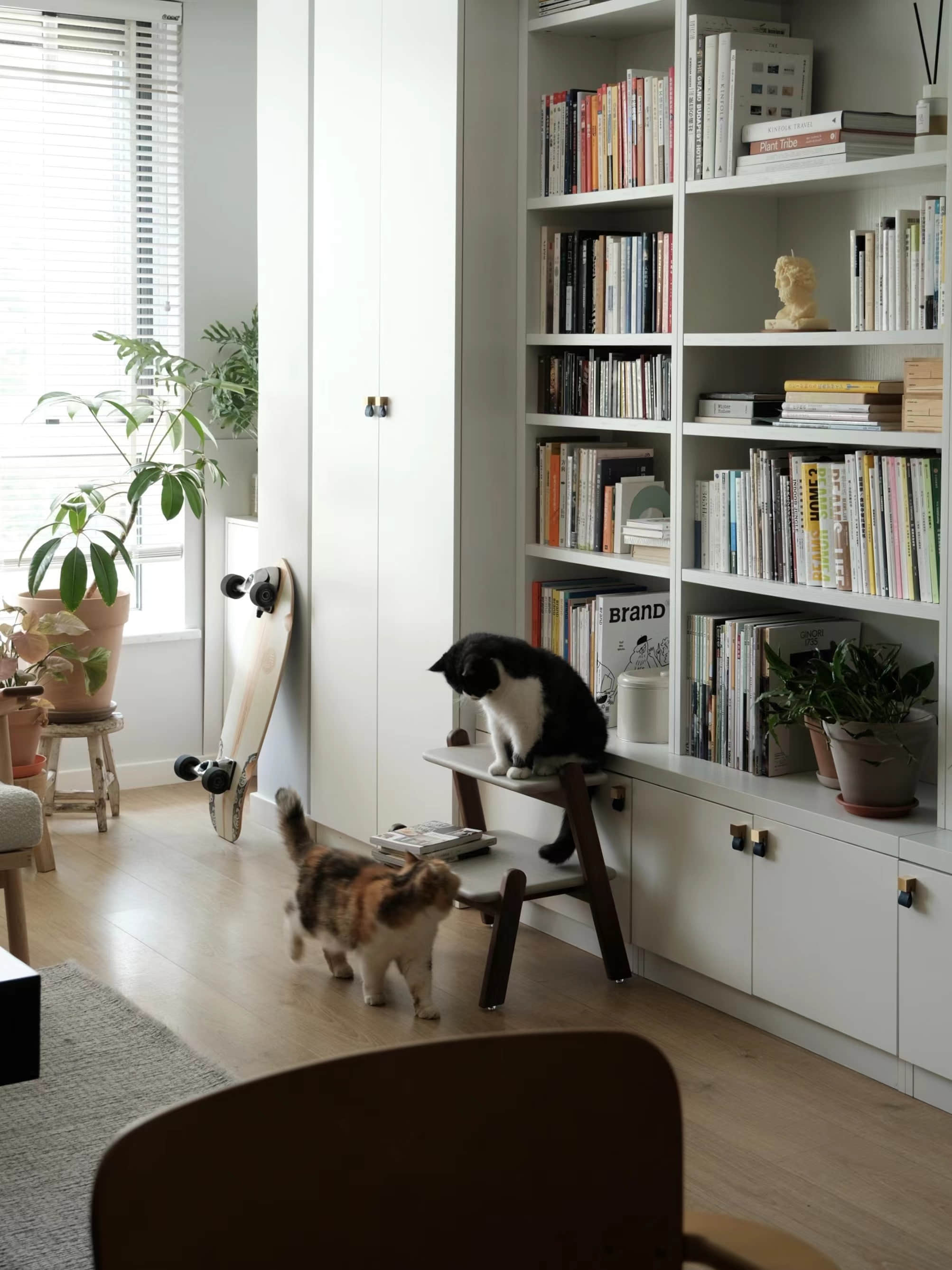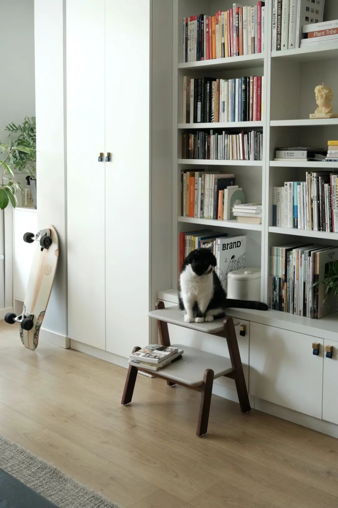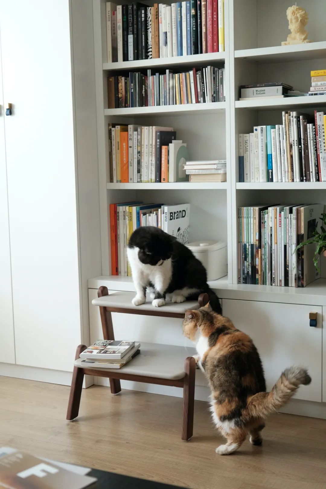 Lylian家里很久没有大变化,可能是天气炎热实在折腾不动,也可能是对于目前客厅的状态还算满意。不过最近还是有一些小小的变化,家中新添置了一个PONY小凳子,高处的书拿起来更方便了,不用时也可当置物架使用,一物多用。两只猫似乎对它也无比喜爱,日常围着它可爱乱窜。