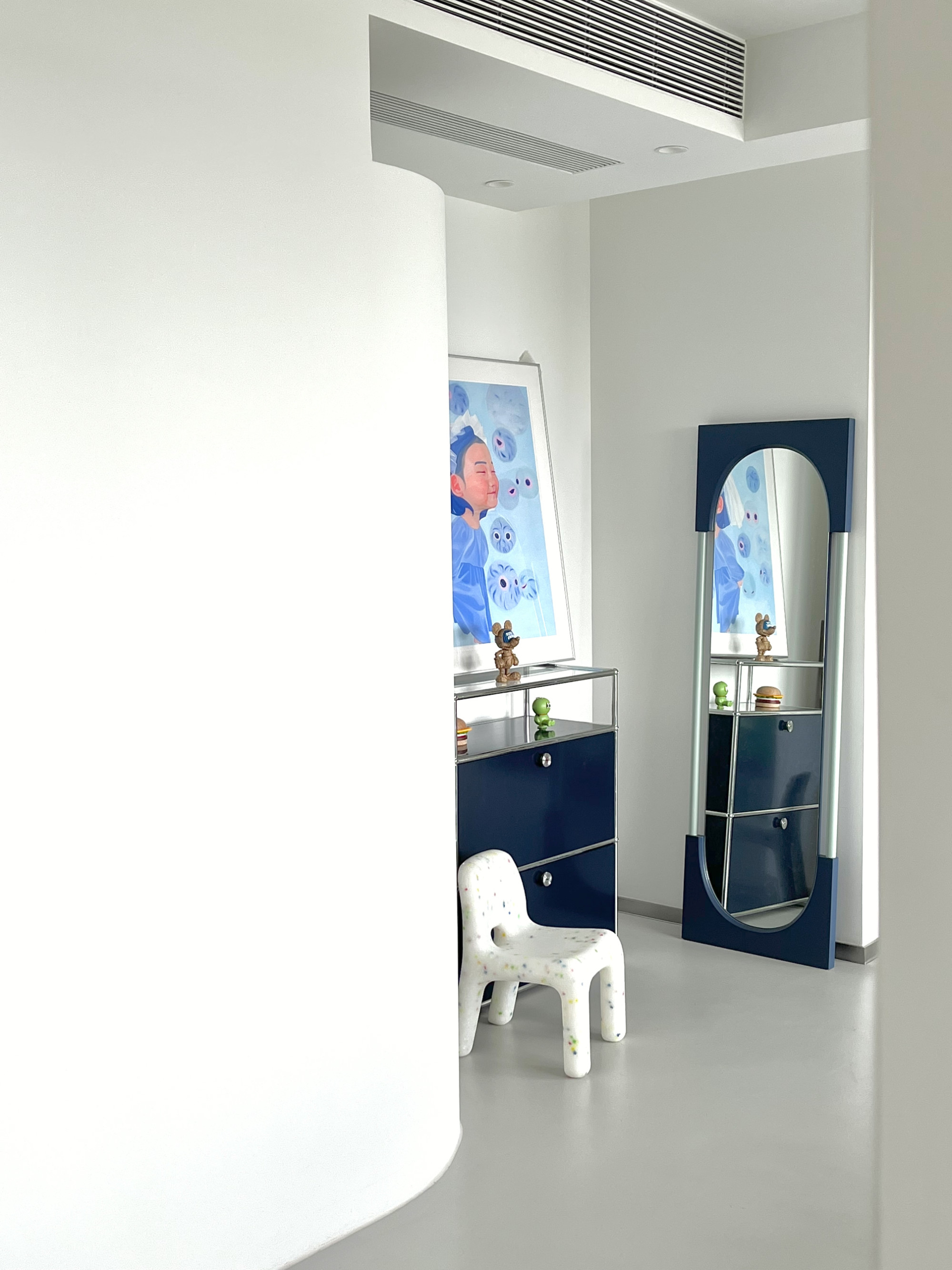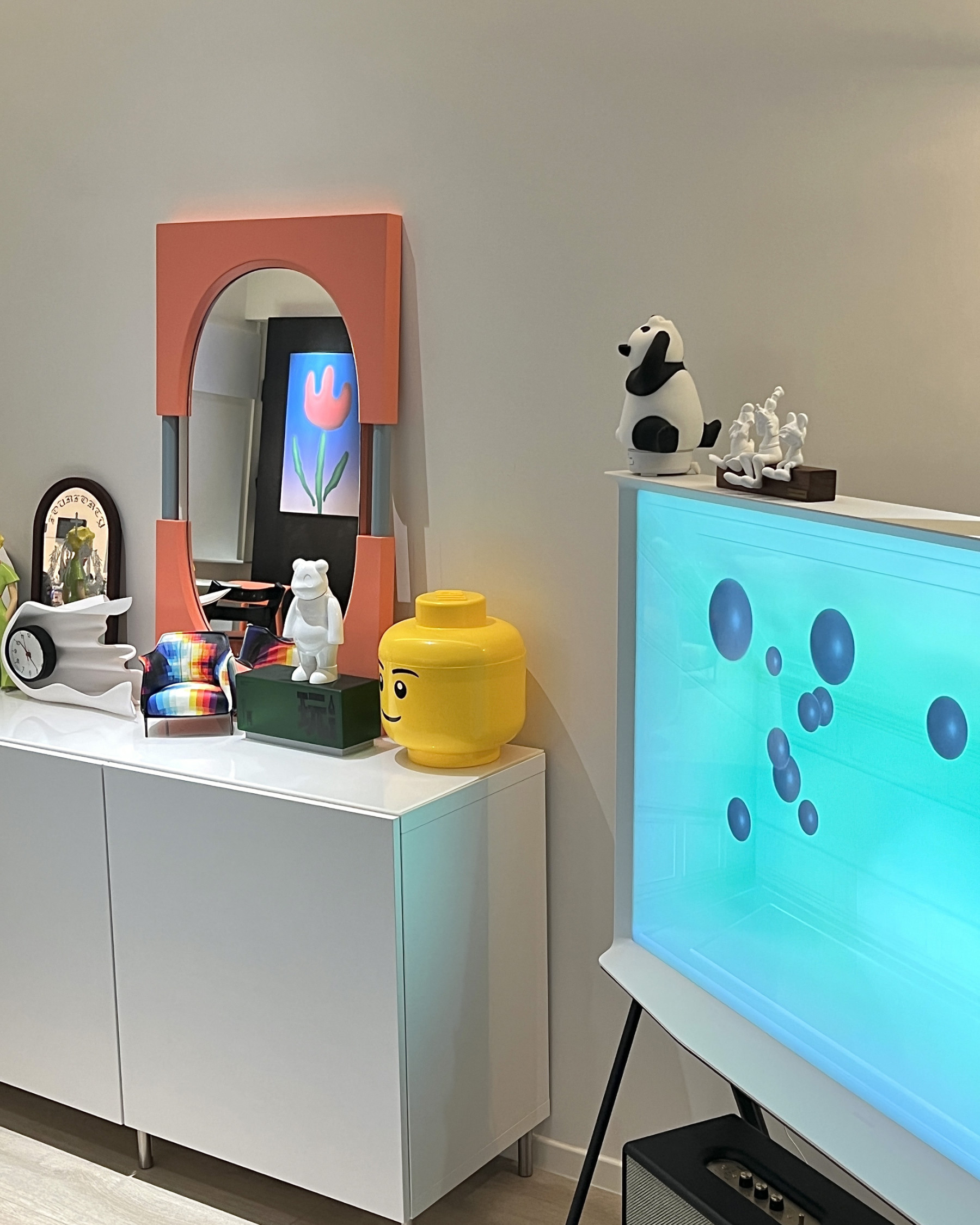 她的家拥有两面NOON MIRROR,一面给孩子,一面给自己。两面镜子各自扮演着不同的角色,也不显突兀,不着痕迹地为空间打上愉悦的注脚。