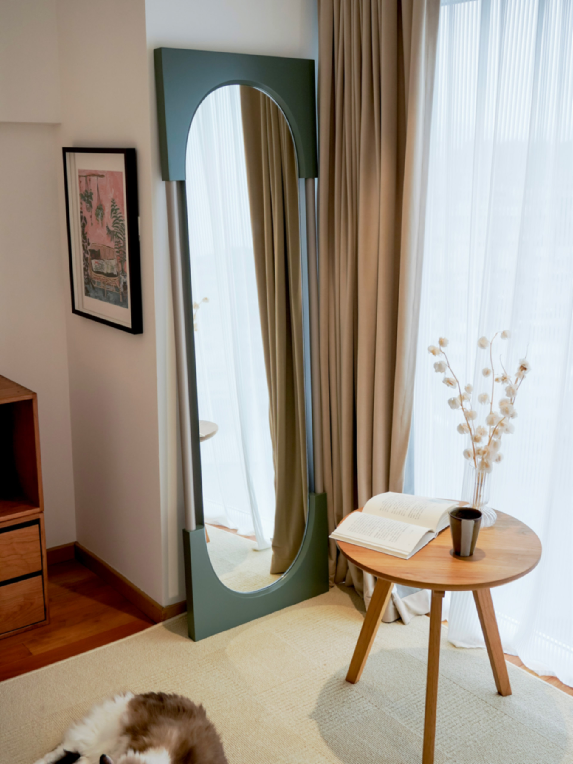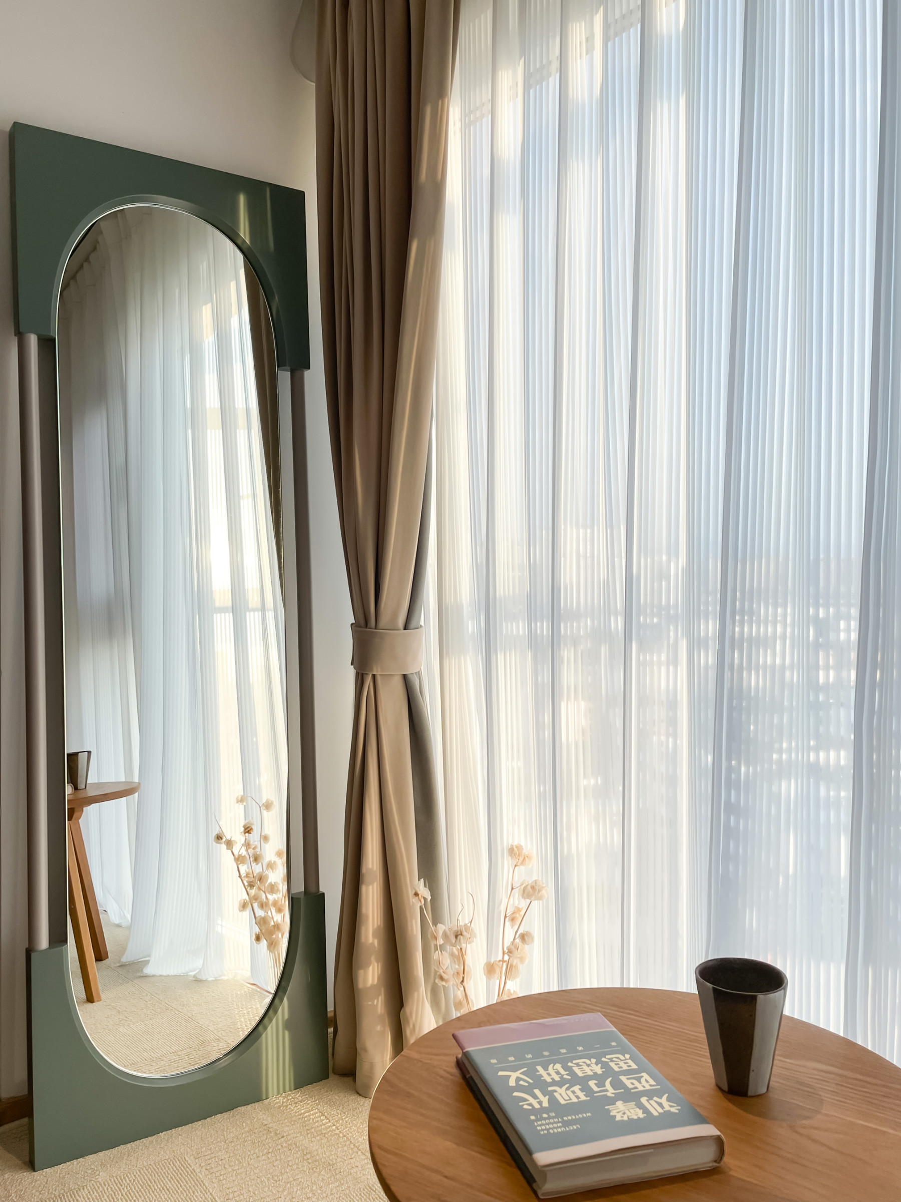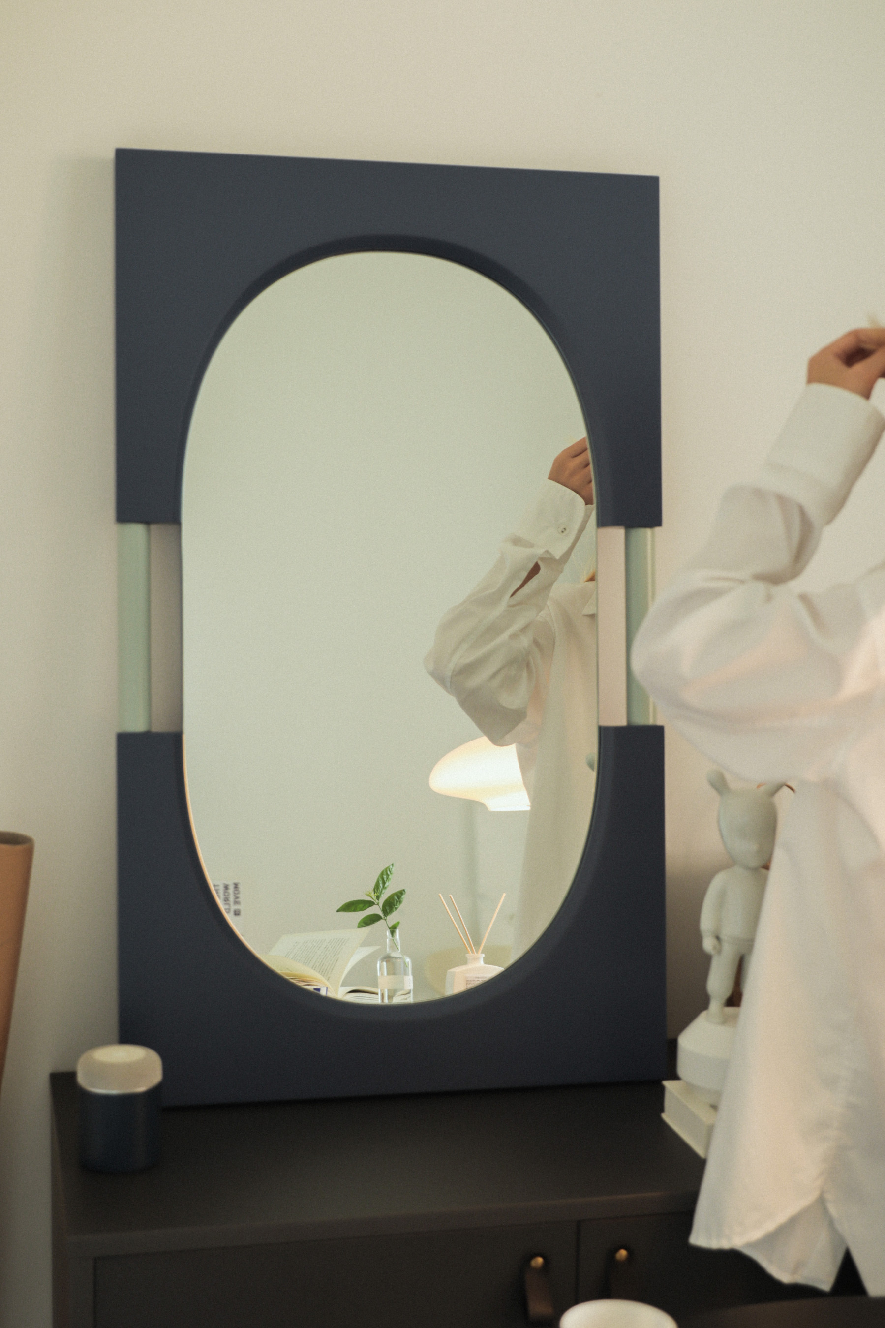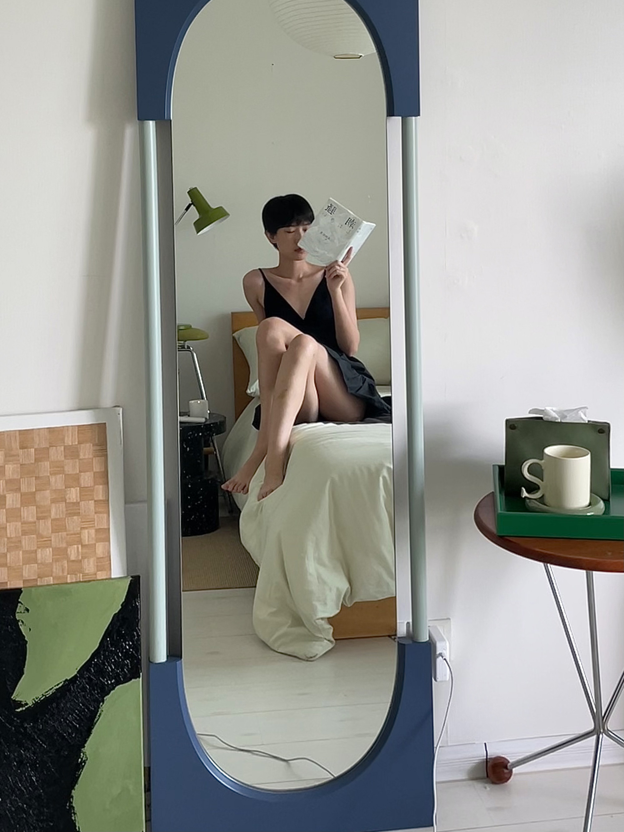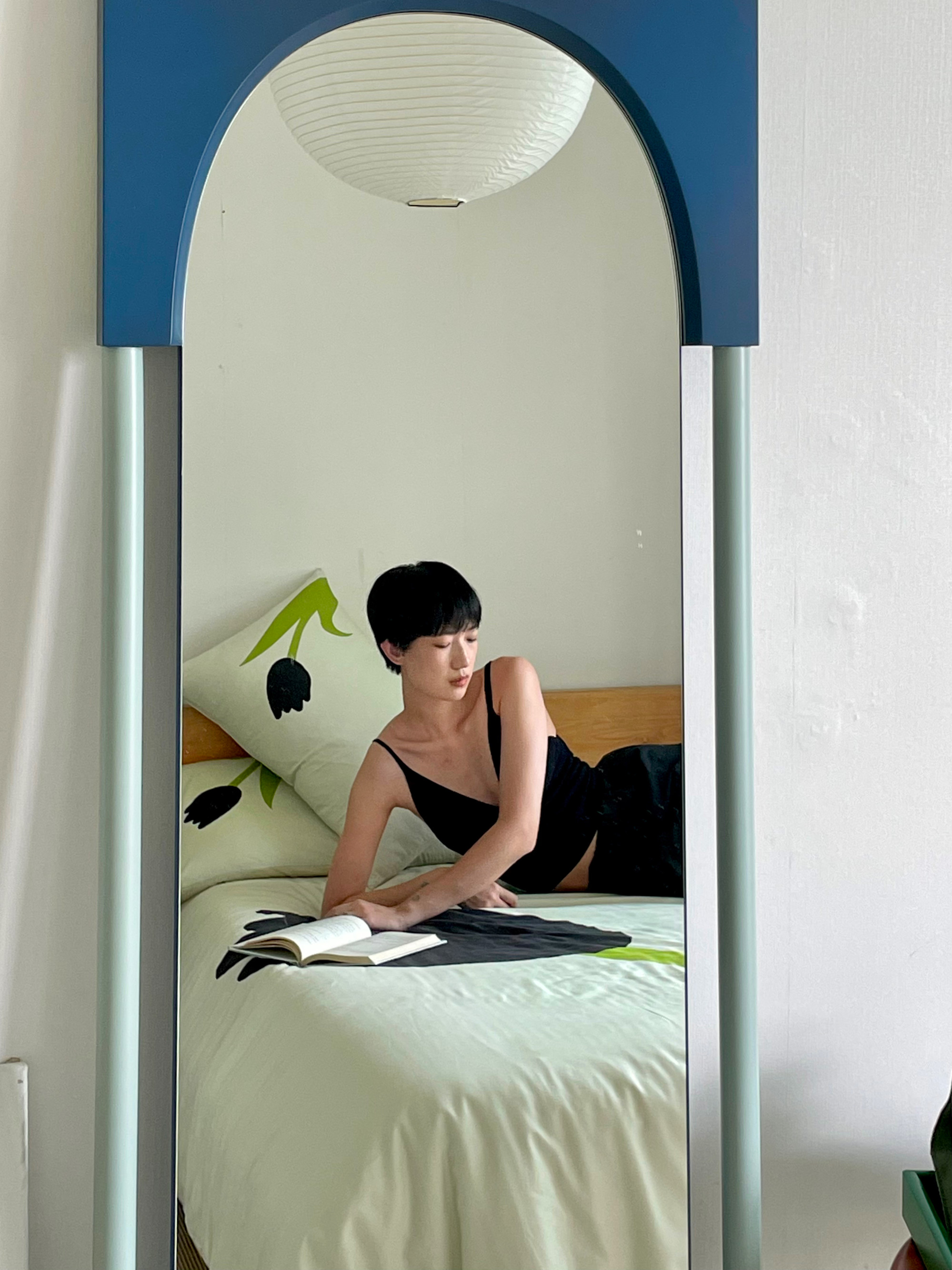 LUNA WU说:“新入手的NOON穿衣镜真的太美了,拱门的造型设计又有一份法式风情。在这个镜子面前照镜子,感觉像一个传送门,传送到每日ootd的世界里。”