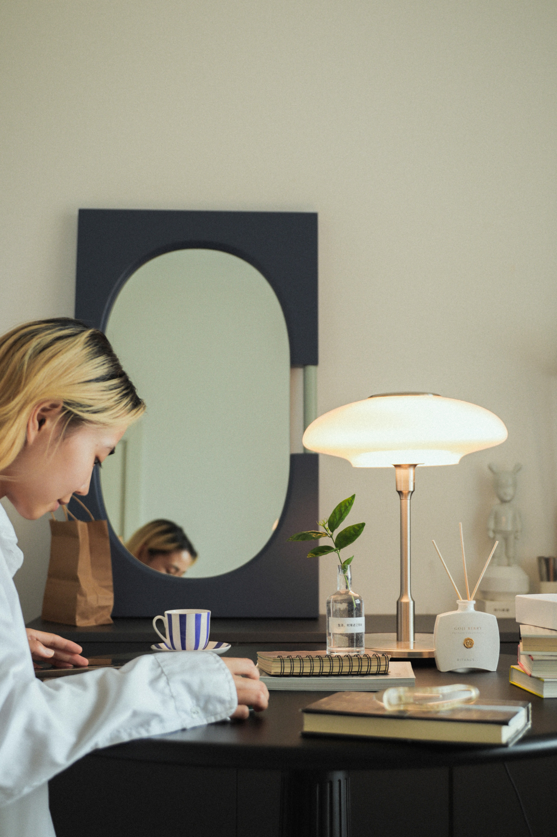 她喜欢空出一整天的时间,在镜子前读书,沉浸于其中,时常被其中某股力量安慰到。偶尔轻挑一下桌上的太阳花草,感受生命的纯粹乐趣。