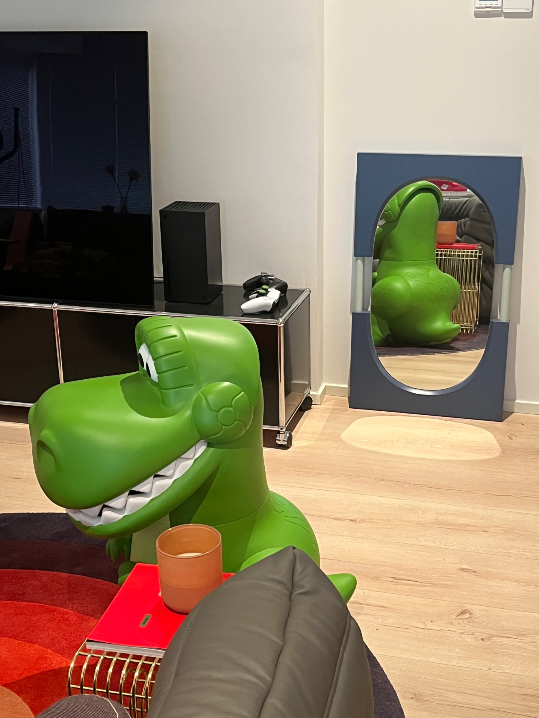 家的客厅虽不大,ONEOFF却喜欢时常保持新鲜感,改变一下格局,或者软装。他说第一次从镜子里的不同角度看客厅,居然发现了「不一样的好看」。