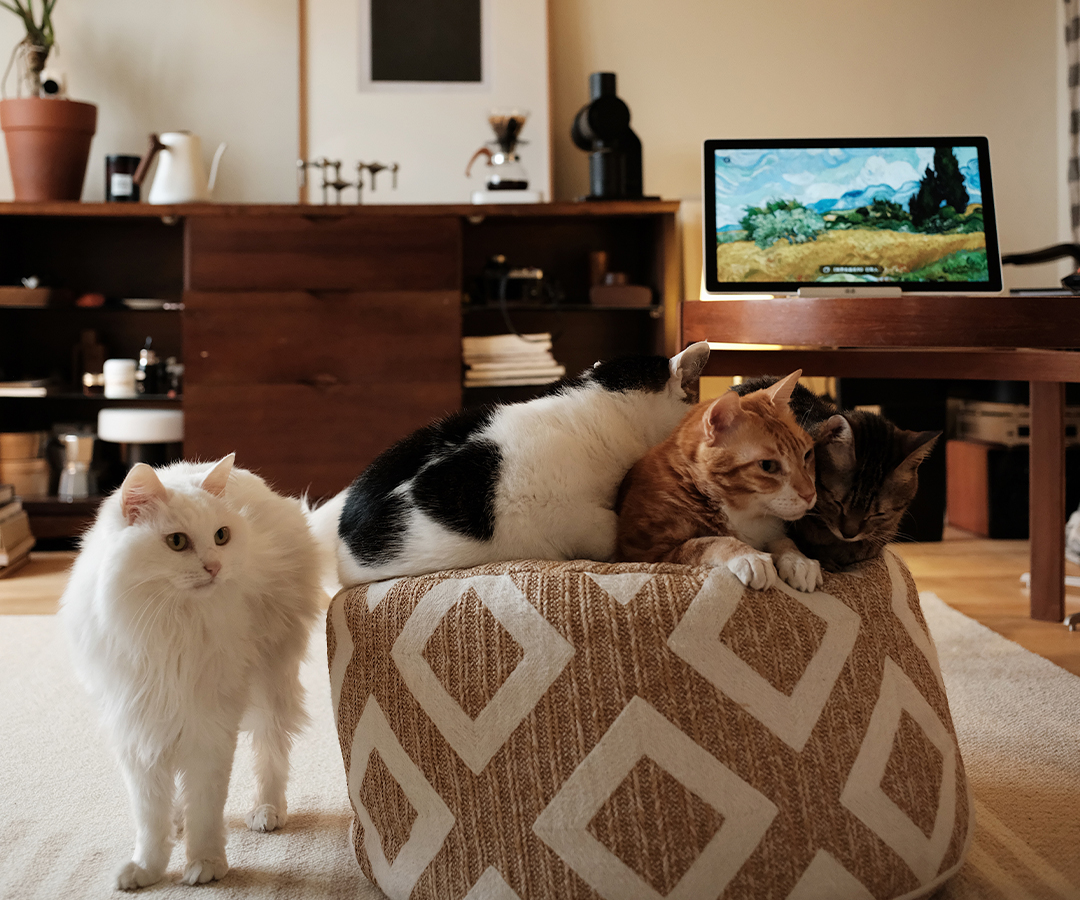 A:猫们是最让我放松的移动角落,有时猫很粘人,有时又很高冷。