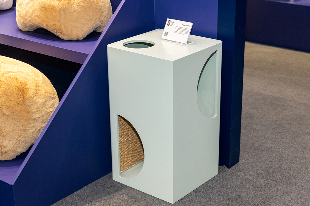 Jenga Cabinet内置抓板与甬道,在门口等待动物来客。不和猫玩耍的时候,也是边桌与床头柜,包容式的设计实现了家庭中人与宠物的舒适“平权”。