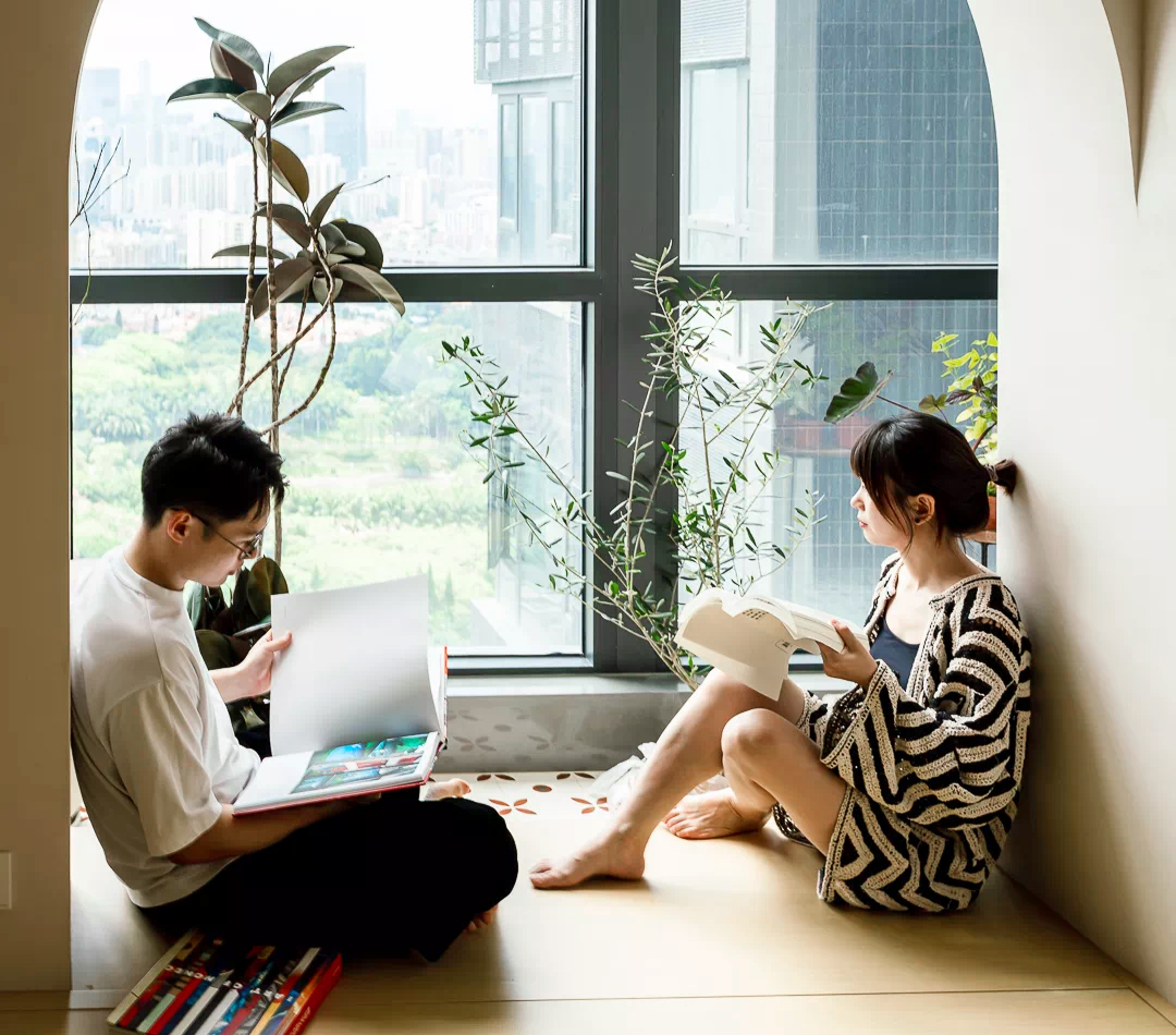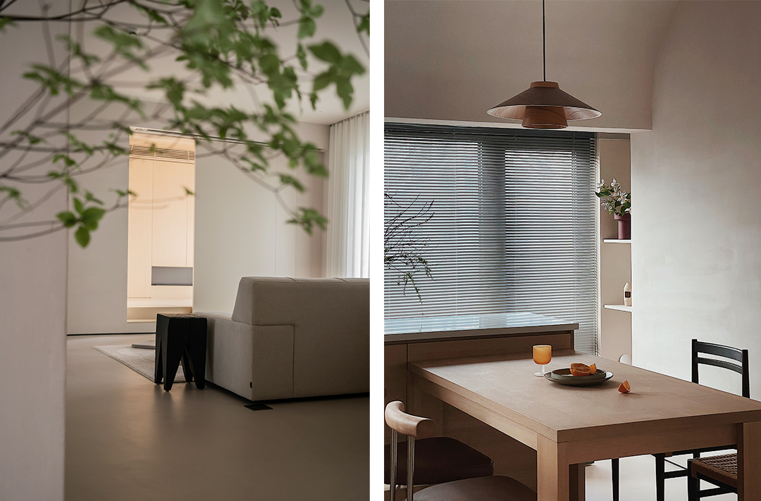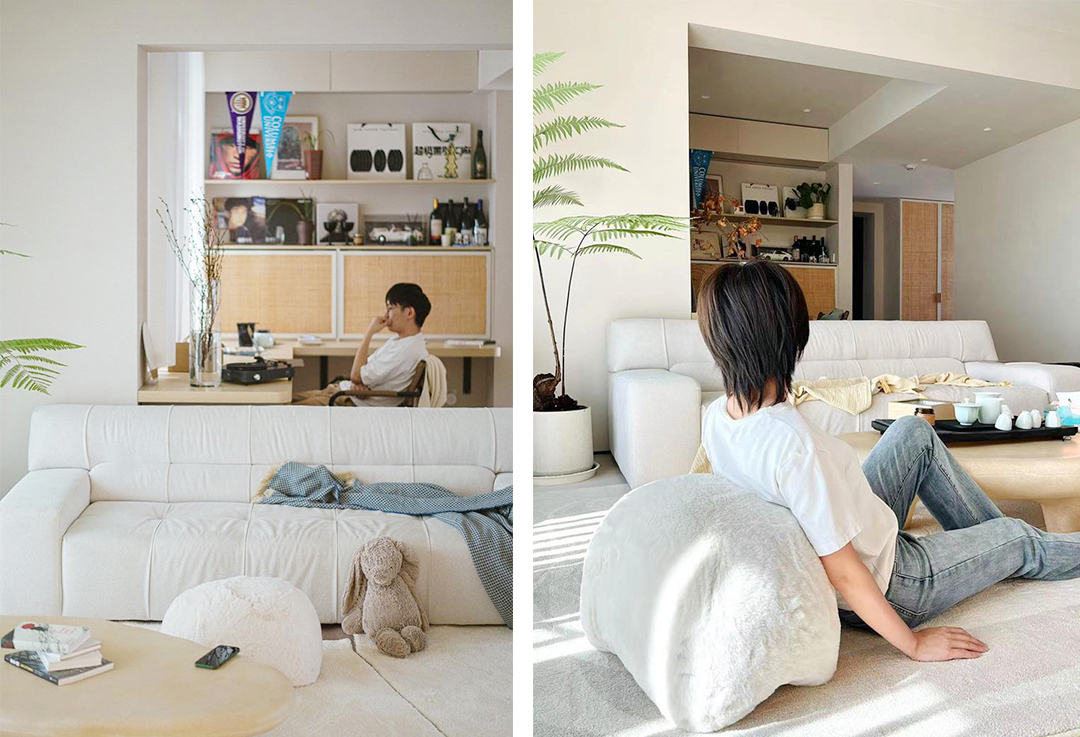 Weik喜欢干净、整理,Jing则喜欢收藏、堆陈。他们俩的个性被设计在同一个家里均匀地流动着,同一个角落时而被整理成空白,时而又“失控”回另一幅样子,彼此理解与包容。