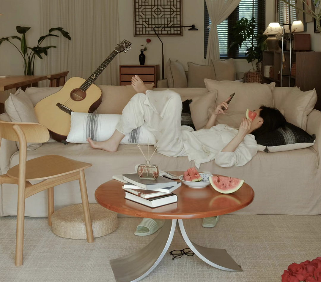 两把椅子,一张小桌,和再简单不过的大杯冰饮,喜爱的音乐环绕,而窗外的树枝摇曳,变得很慢、很慢、很慢......此时此刻,苏大圆子身心悠哉,安静地进入了这个夏日。