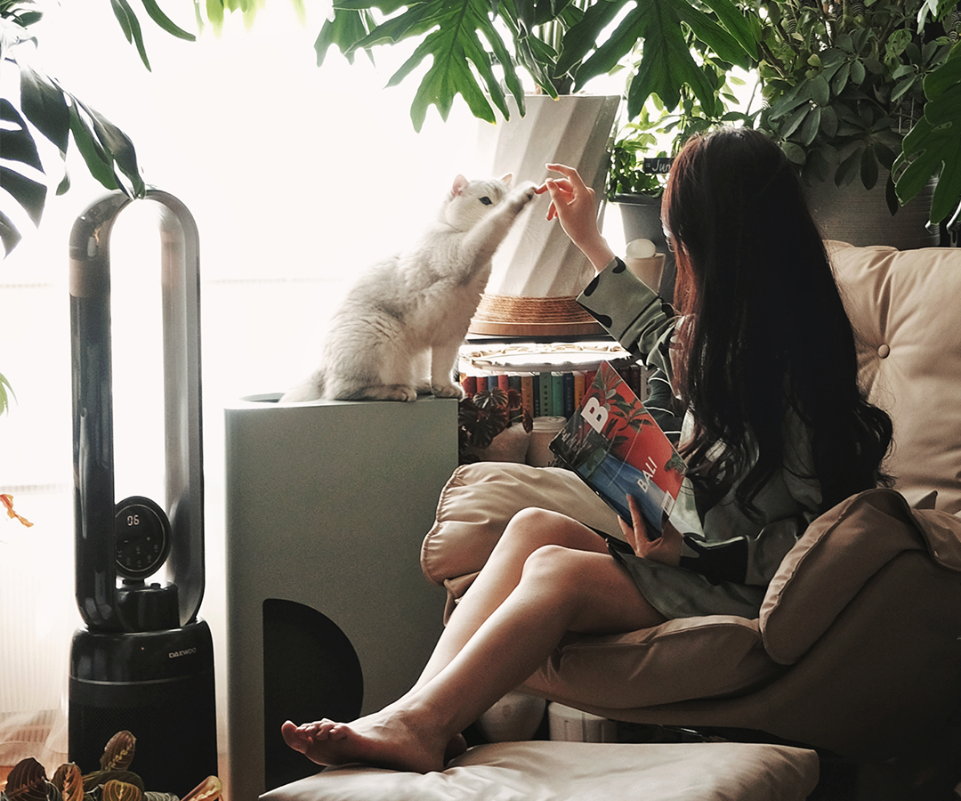 夏天最惬意的时刻,就是和家里的动物、植物宅在一起吹空调。阳台上,在热带雨林般的光影中阅读,或者与身边的“万物生灵”一同小憩。