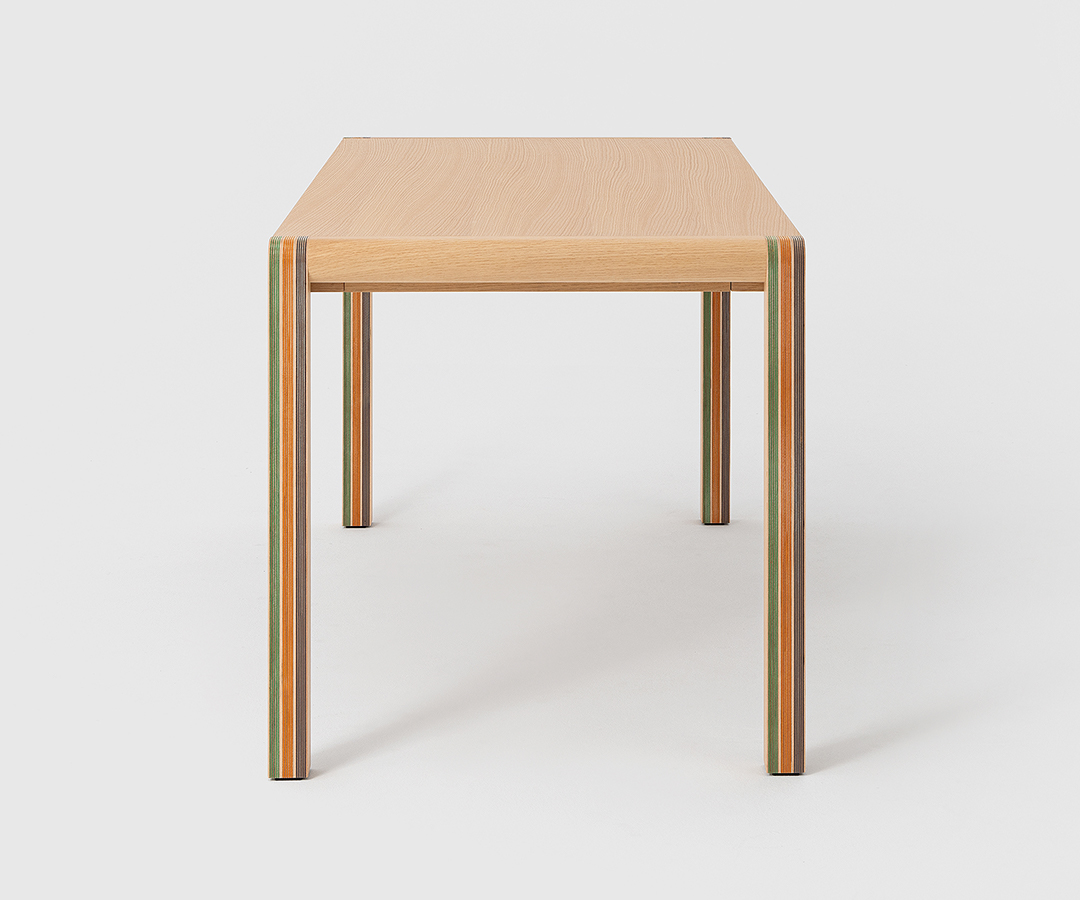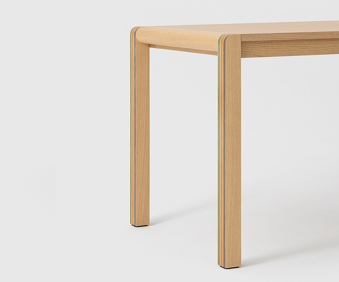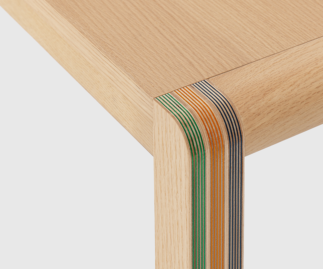 两侧的圆弧面拼合设计,既赋予了方桌圆润的视感,也让桦木多层板的线条更加流畅连贯,像从桌面流出延伸至桌腿,拥有一气呵成的清爽。