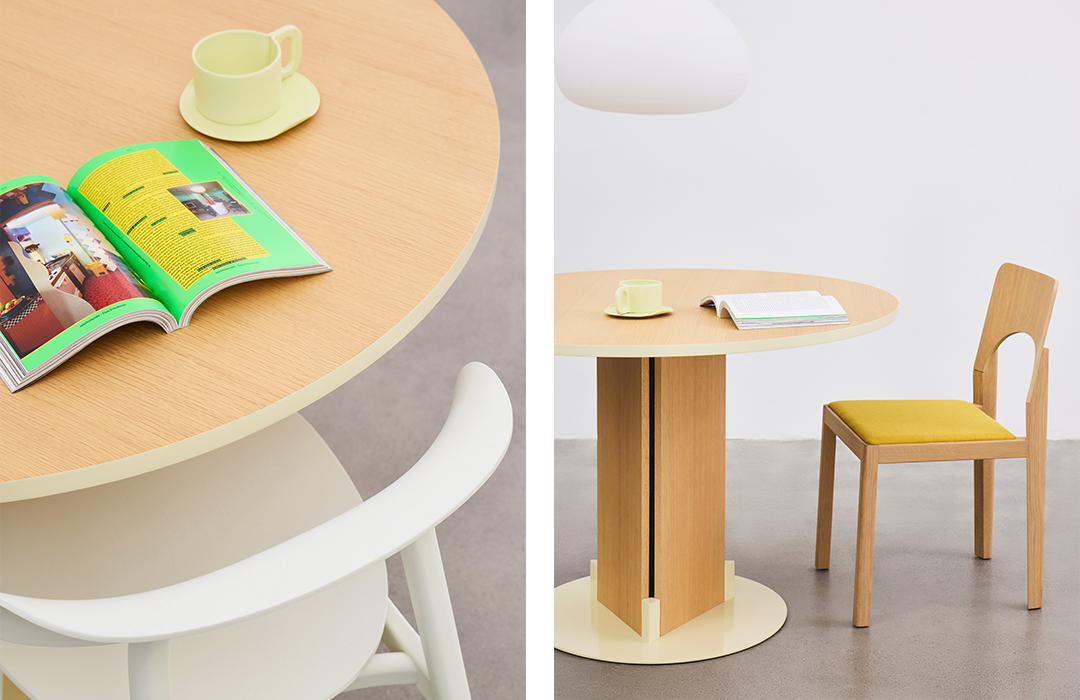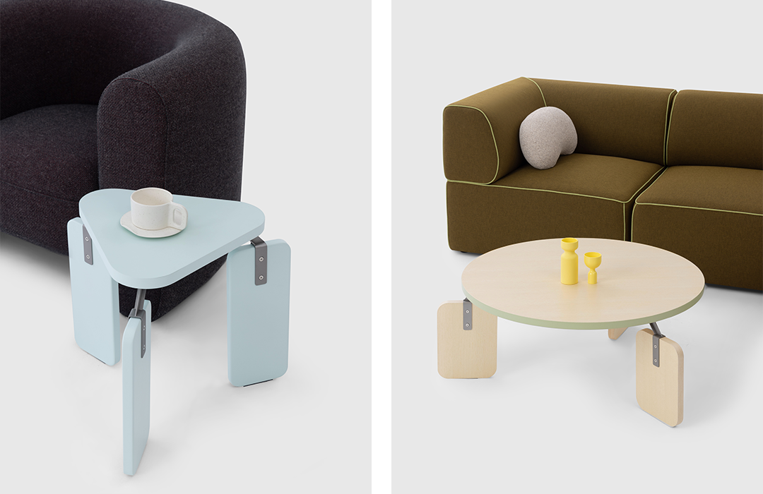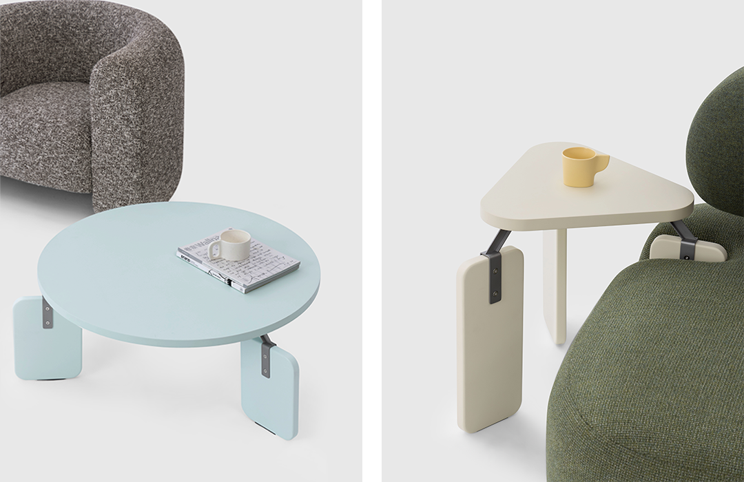 拥有多种色彩和材质选择的 Joint Side Table 和 Joint Coffee Table,既可以独立使用,也可以搭配组合为支撑系统。
