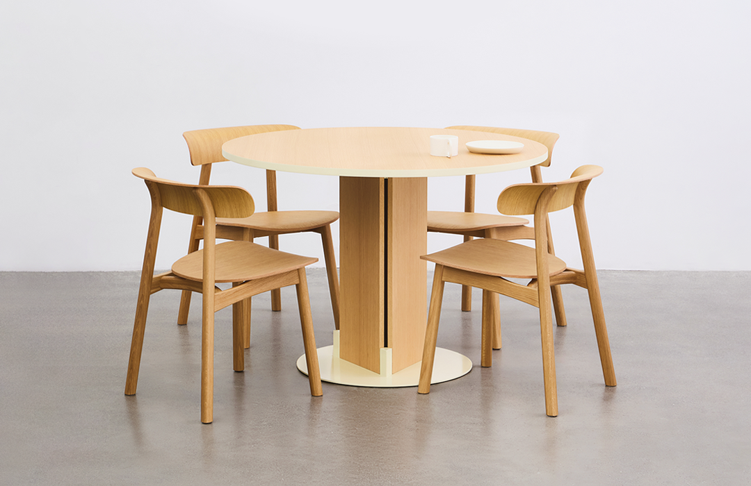 从间则品牌符号「0」衍生出的虚实图像出发,Side by Side Table 提取了方与圆,以探讨不同切面如何以包容姿态达成视觉的平衡。