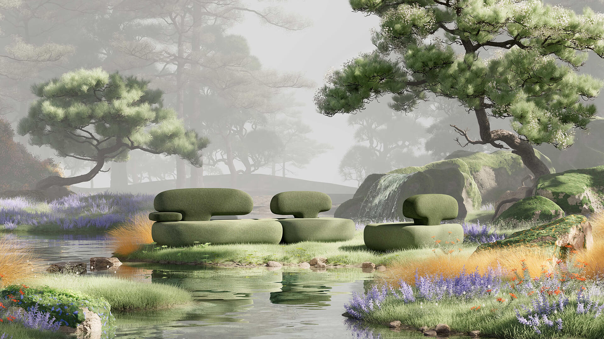 将松的形、色、意融入沙发,通过东方独有的自然文化符号,在当代日常空间展开身心疗愈。自由可拆分的靠背和坐垫模块,支持用户在家自主拼装成形,亦可在后续使用中随需求变化而扩展。