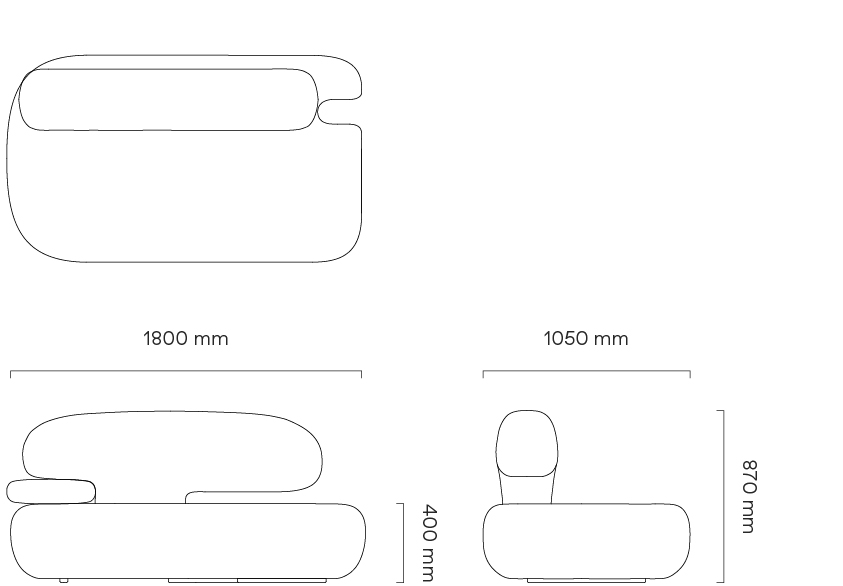 L1800 × W1050 × H870mm (坐高400mm;坐深700mm)