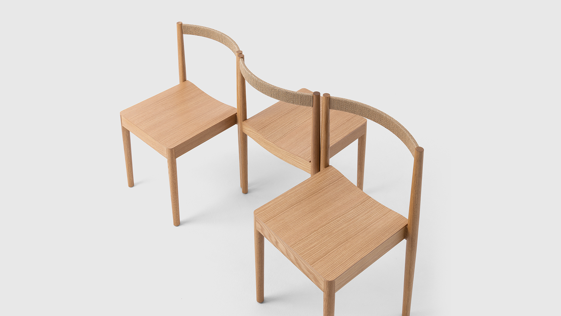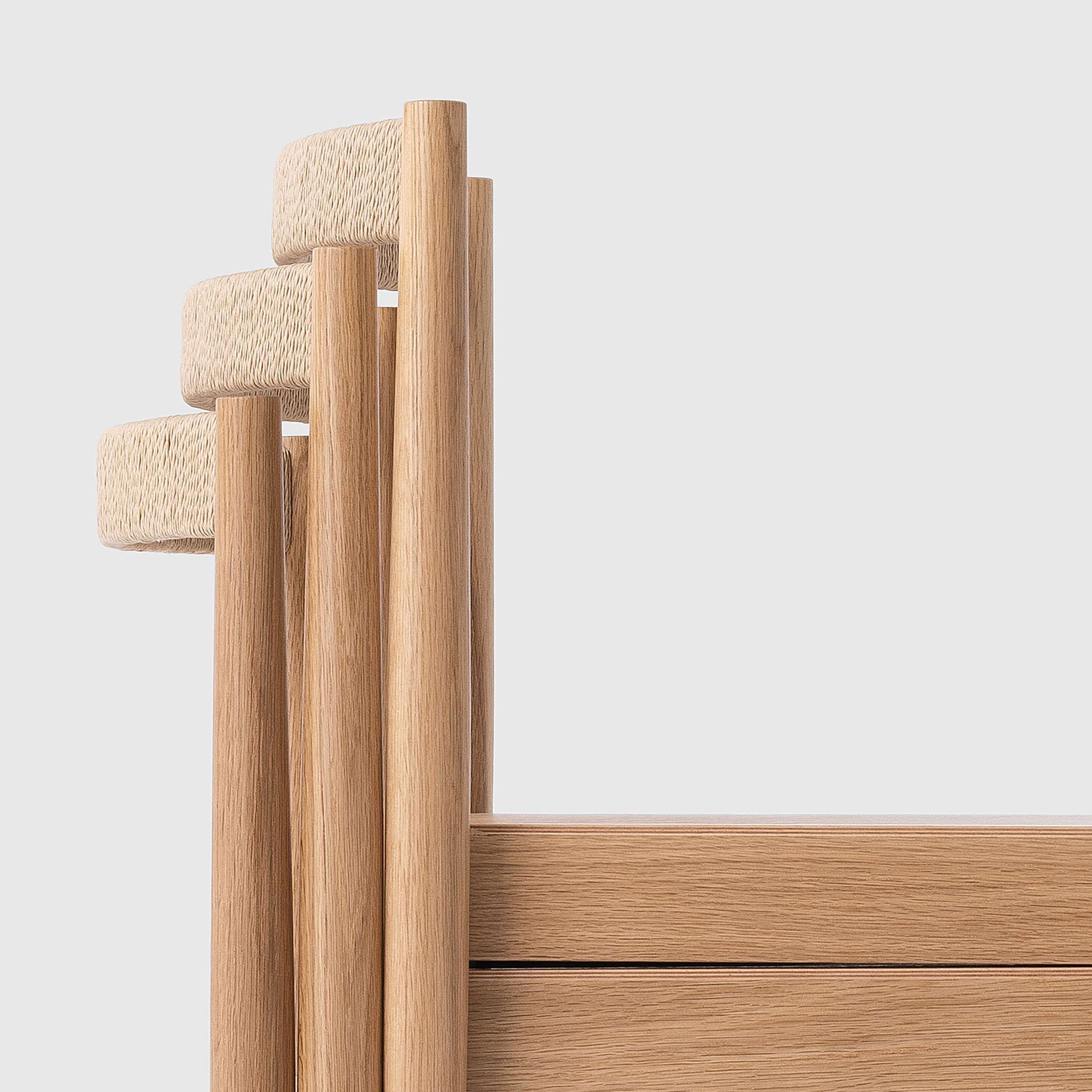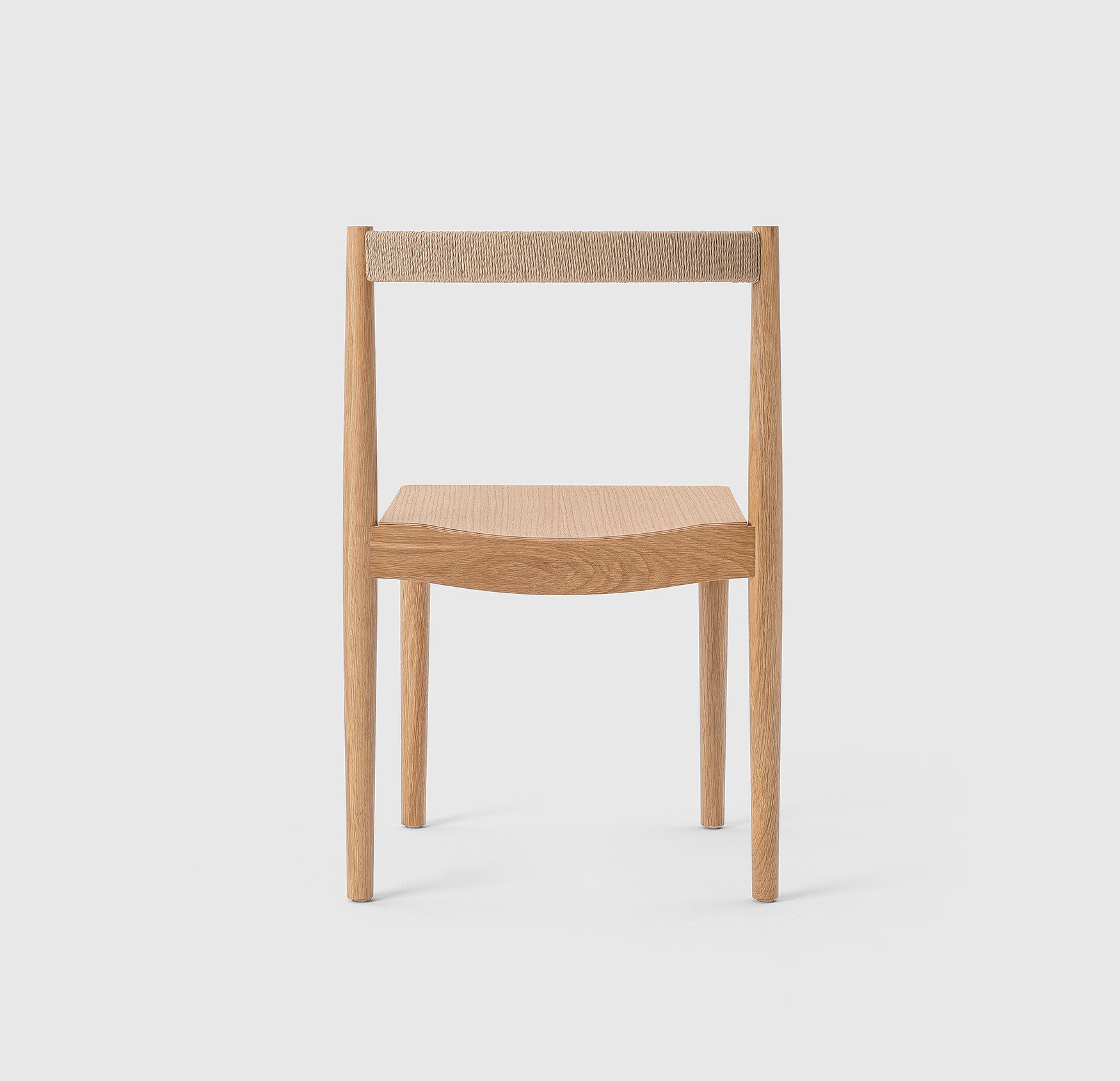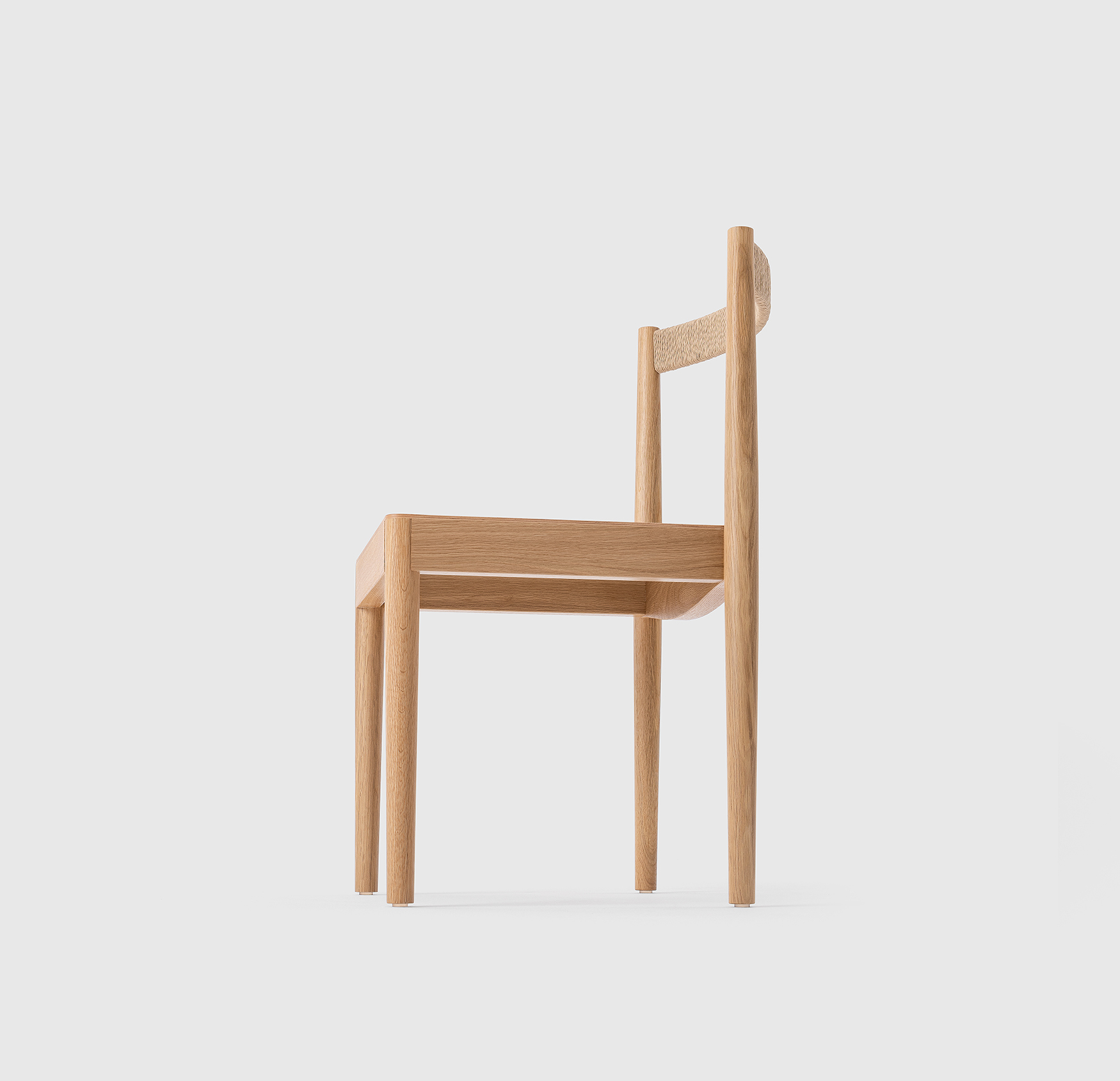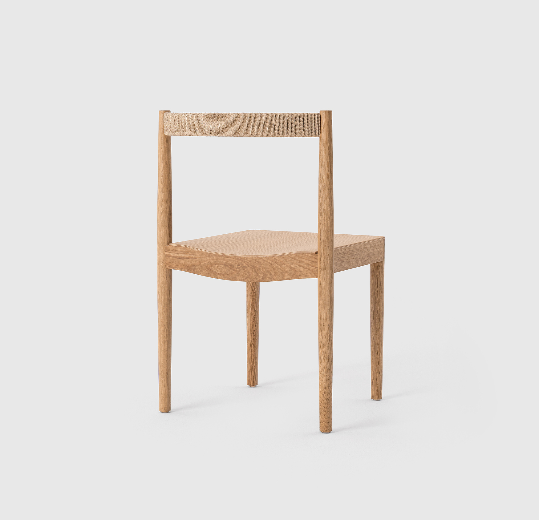 Qiáo Chair是一款可叠放的木椅,配有纸绳包覆的软垫靠背。略显锥形的纤细腿部与中间的宽大座面牢固连接,为不同使用者提供安定且舒适的落座体验。无扶手的基本形态以及恰当弯曲的靠背,让椅子可以轻盈地融入不同空间。实心橡木框架的结构通过设计在美观、稳固与实用之间达成平衡,可支持最多叠放6张椅子,在存放时灵巧地节省空间。