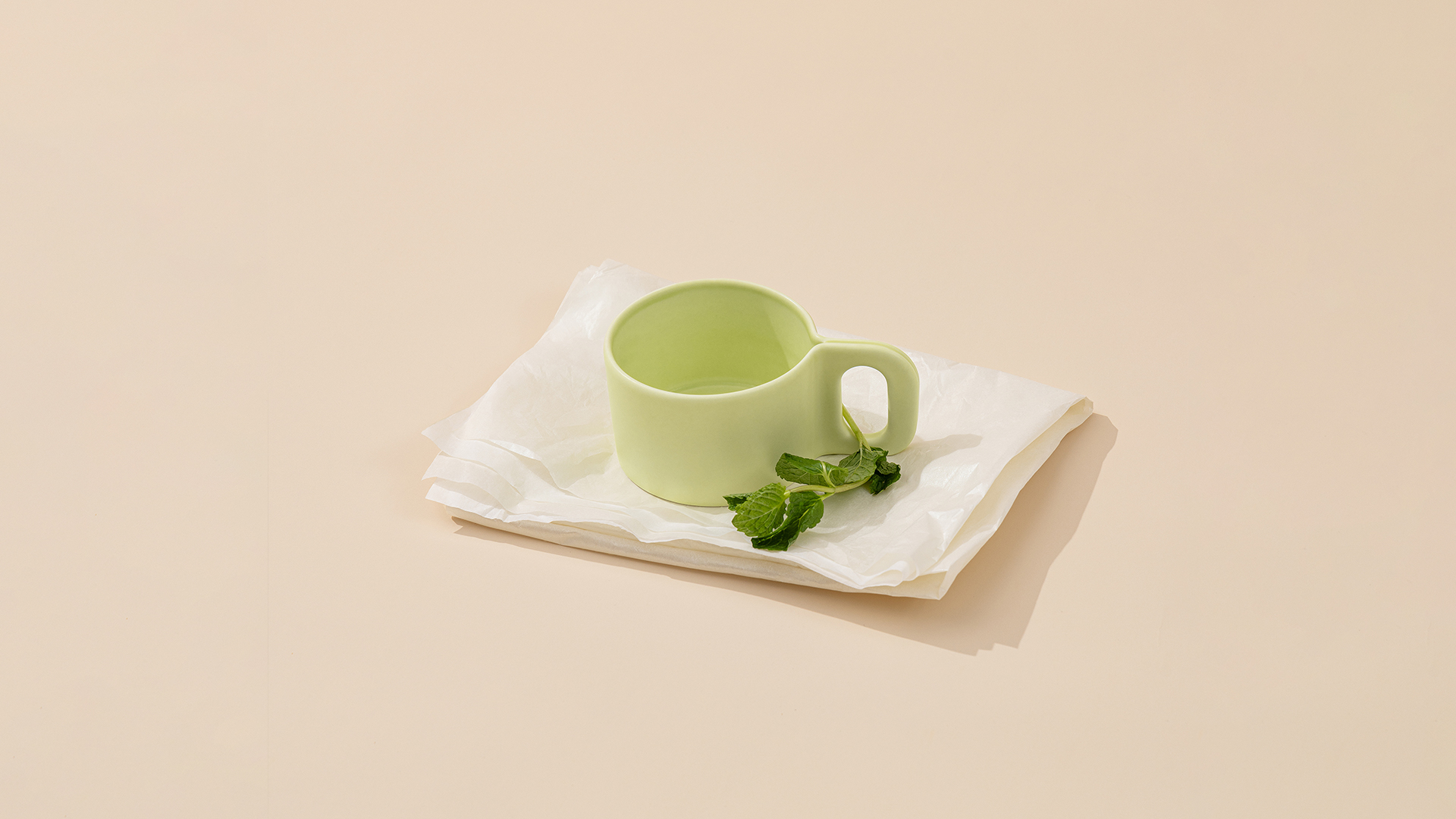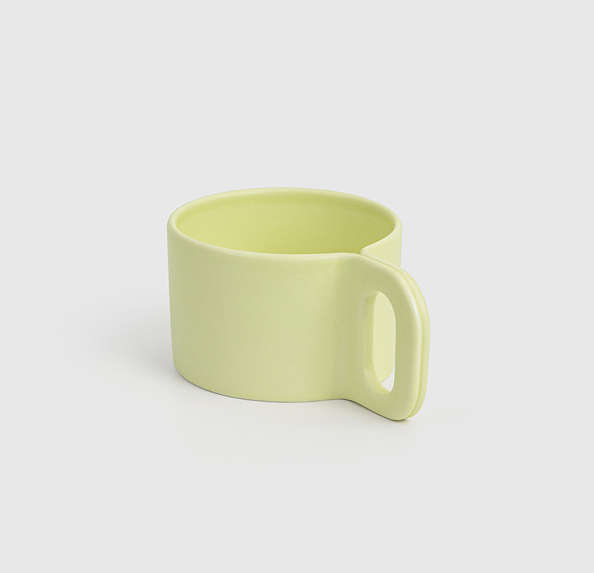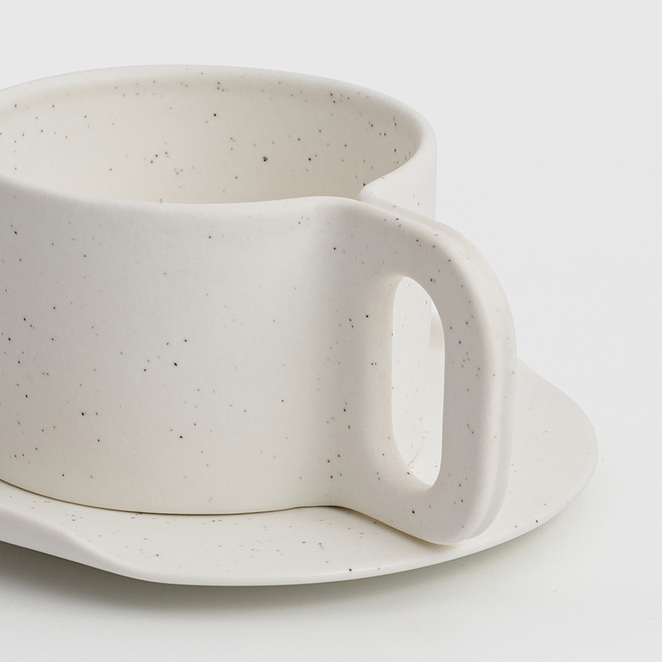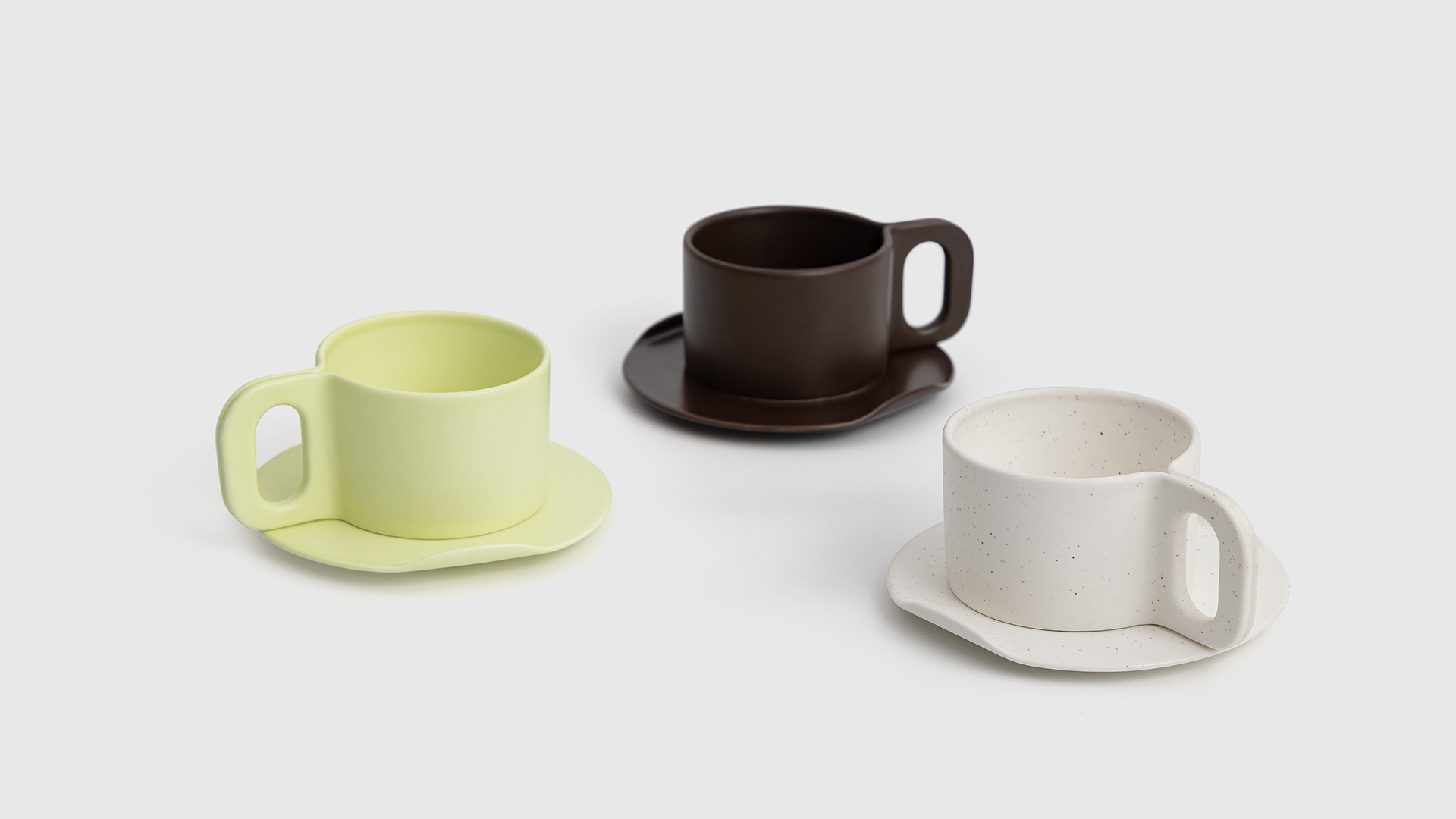 咖啡杯、咖啡碟以及沙拉碗,在造型上仿佛捏泥一般黏贴而成,由简单的立面构造出一种拟态的触感。整体设计展现出了片状泥材的脆弱感与不确定性,用轻巧的方式唤起使用者心中那种令人熟悉的愉悦,再次回到放松的时刻。