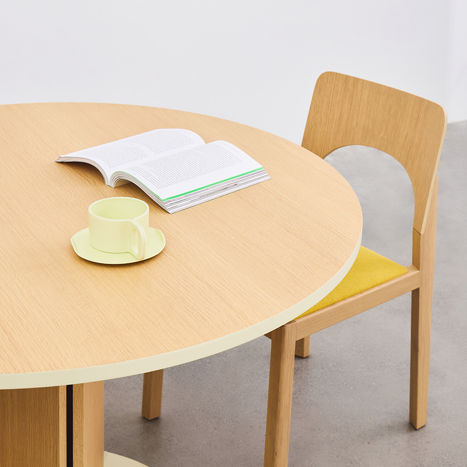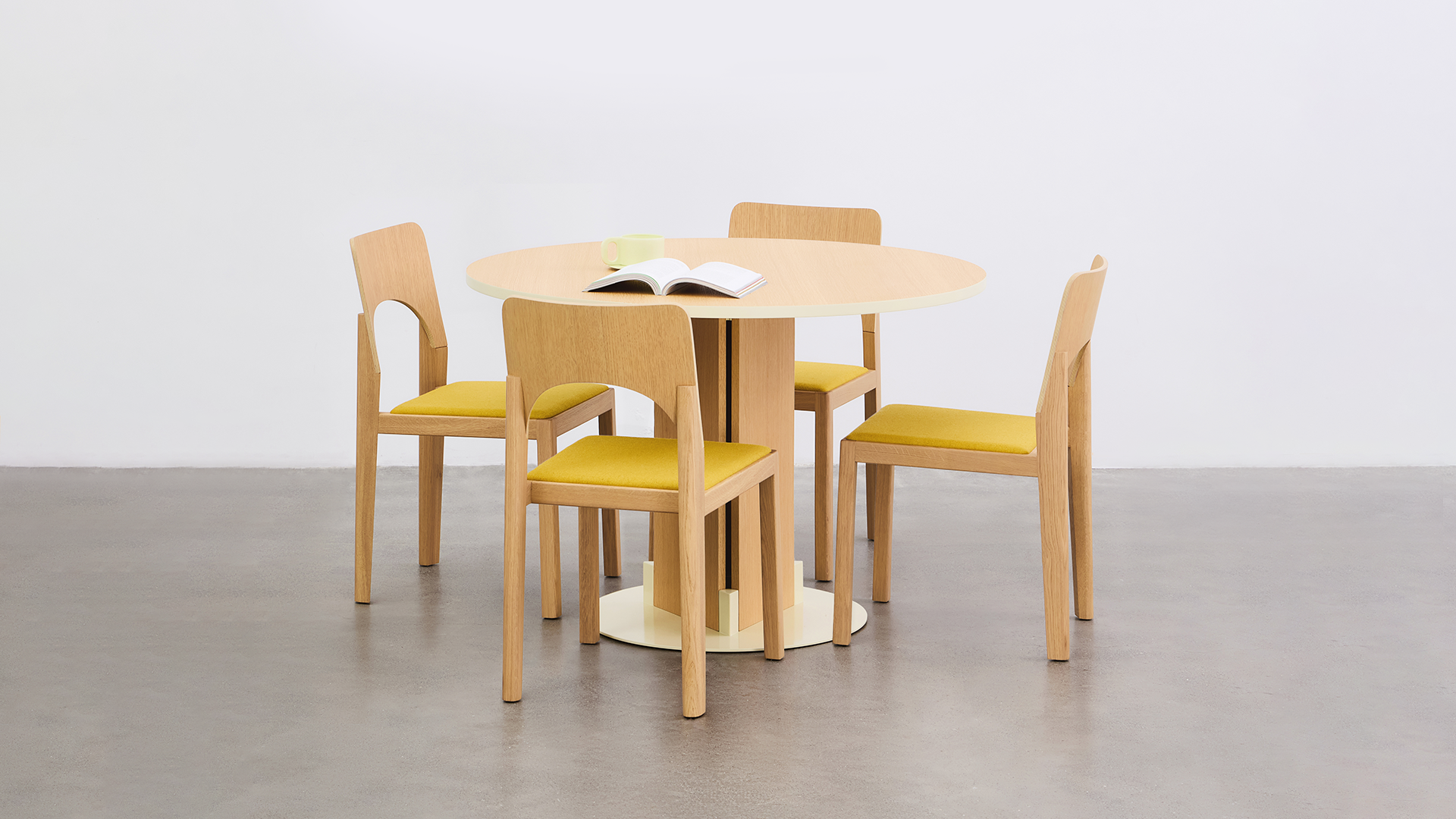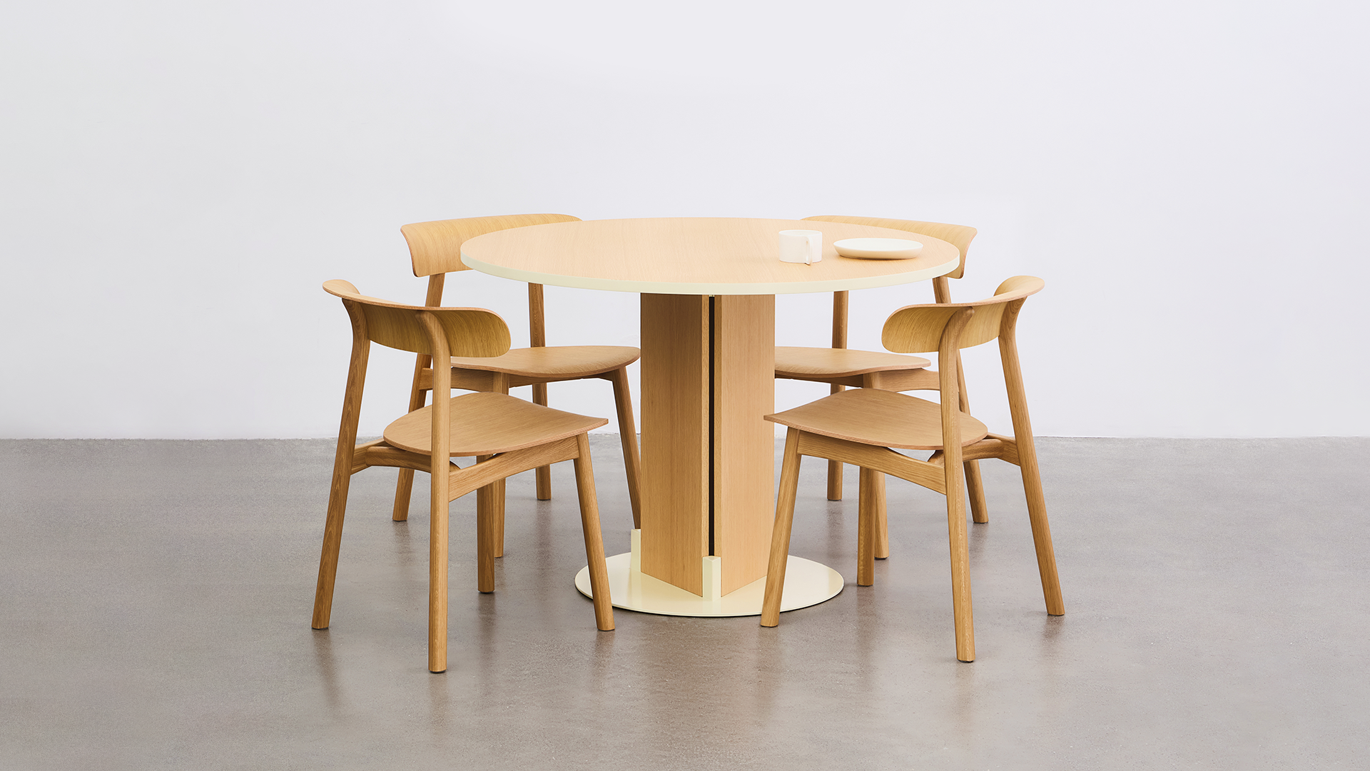 以⽅的切⾯和圆的切⾯组成⾯与⾯之间的构成,⾯与⾯交叠出体块的假象,体块的缝隙中分割出另⼀个空间,通过纯粹几何的形态构建出独具一格的美学秩序。