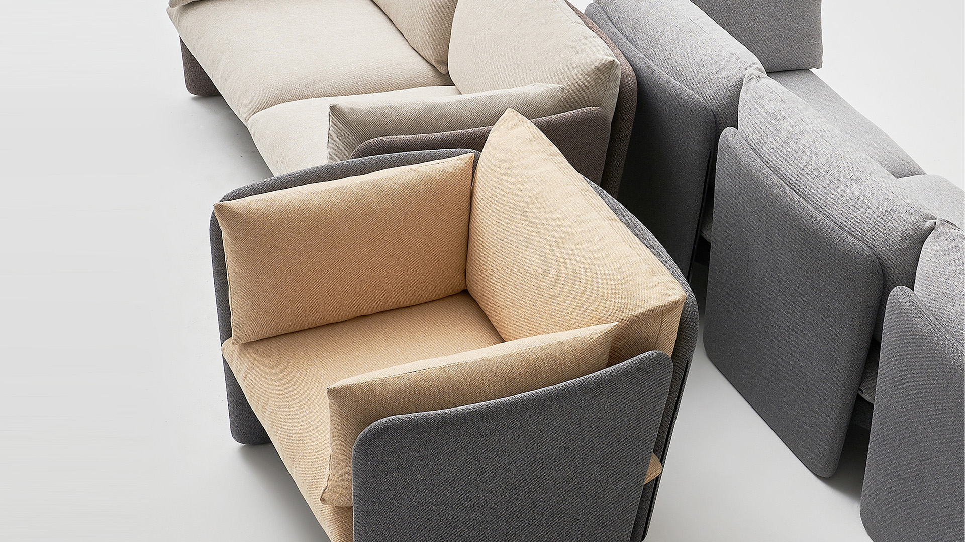 外置、可更换的的软包带来极致放松的坐、卧体验,丰富的色彩系统赋予了空间更多色彩与使用的可能性。