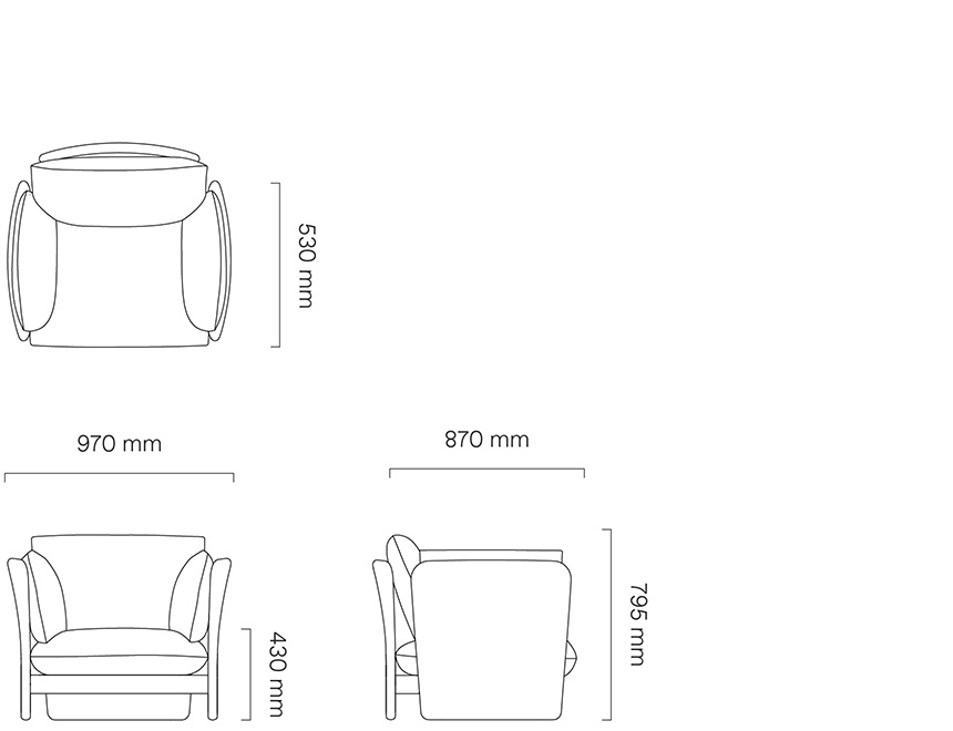 L970 × W870 × H795mm (坐高430mm;坐深530mm)