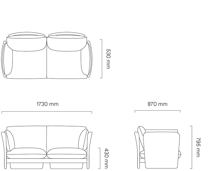 L1730 × W870 × H795mm (坐高430mm;坐深530mm)