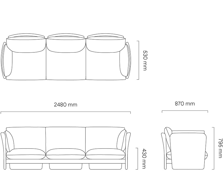 L2480 × W870 × H795mm (坐高430mm;坐深530mm)