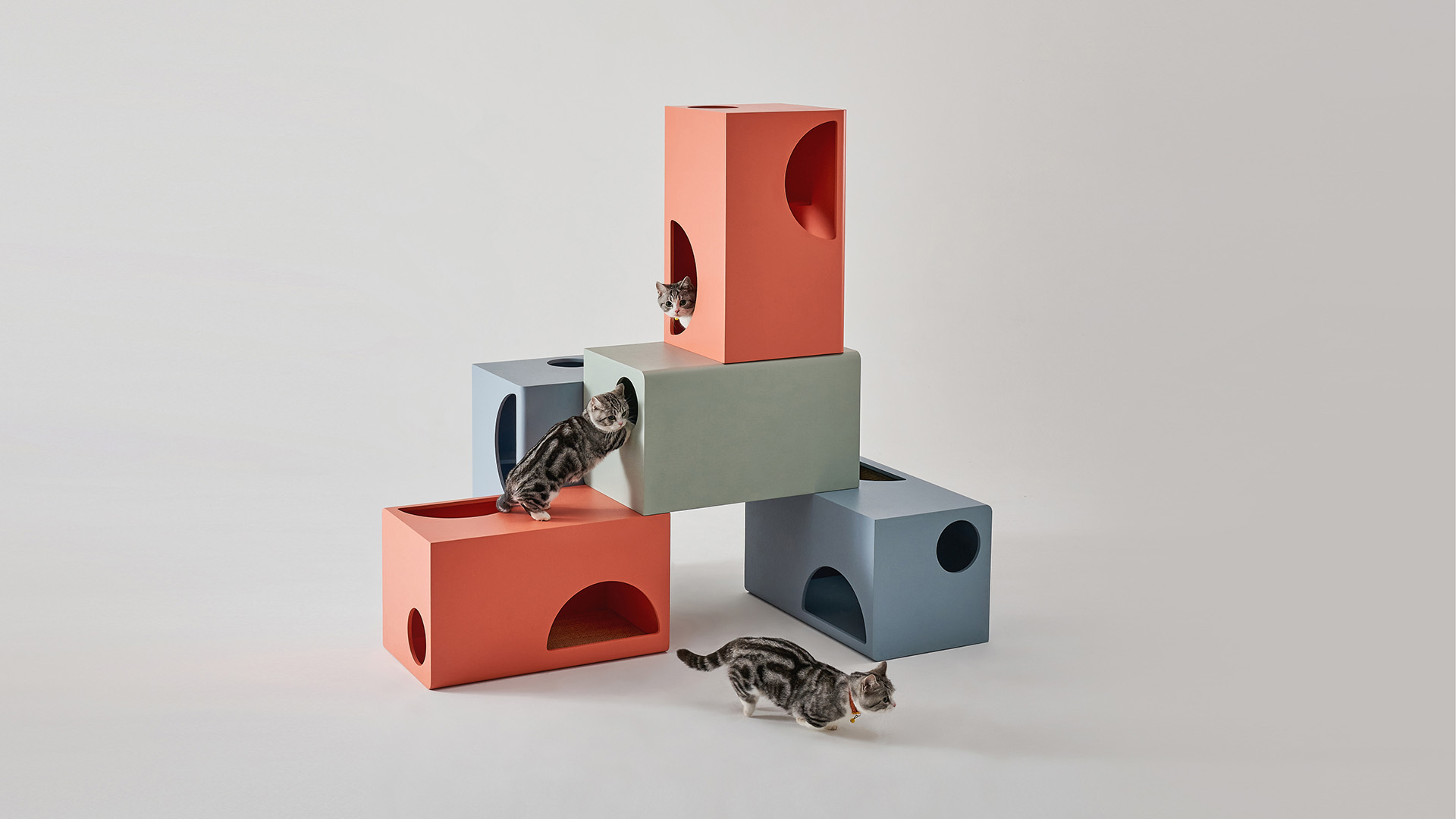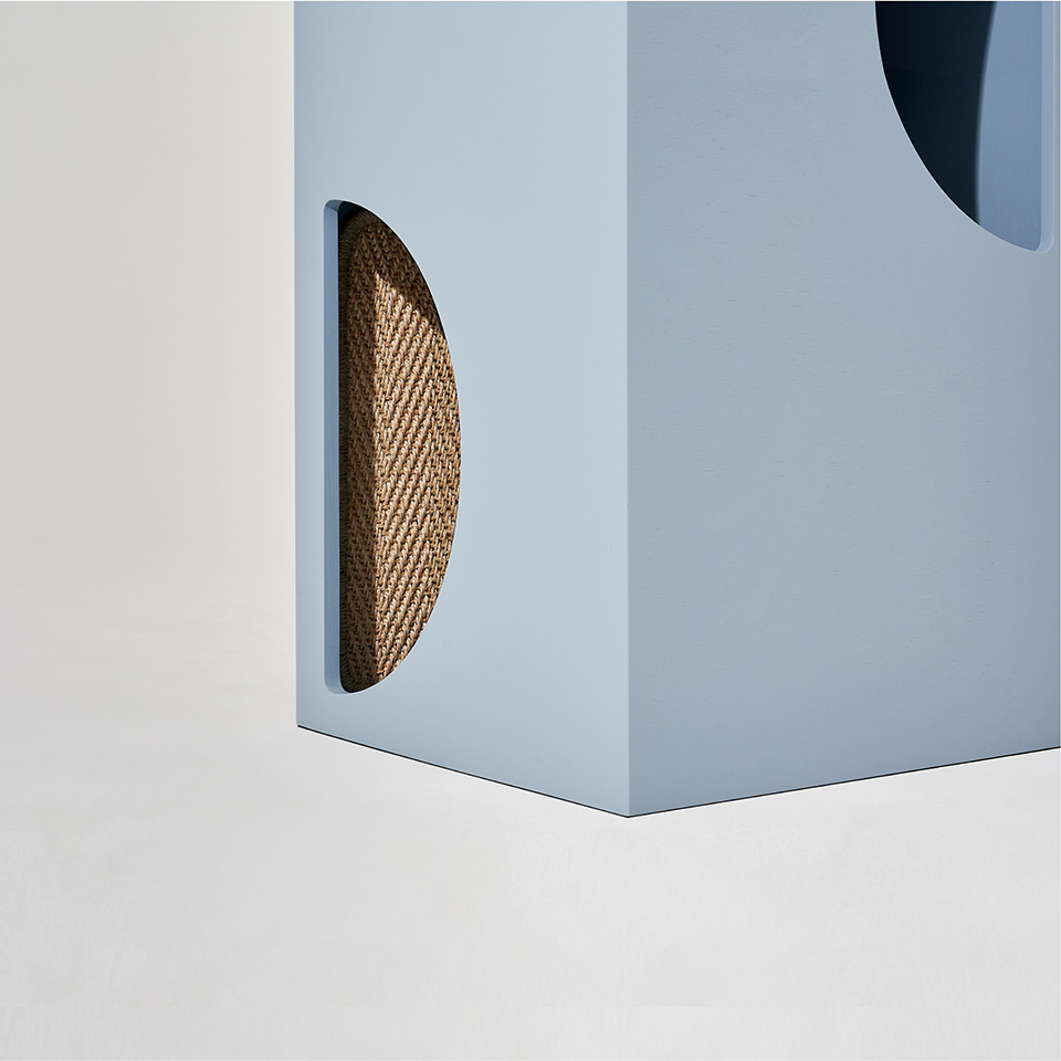 有别于传统的卡通化的宠物家具,Jenga外形简约,能满足猫喜藏匿在角落,穿梭于甬道的需求及磨爪子的习性。