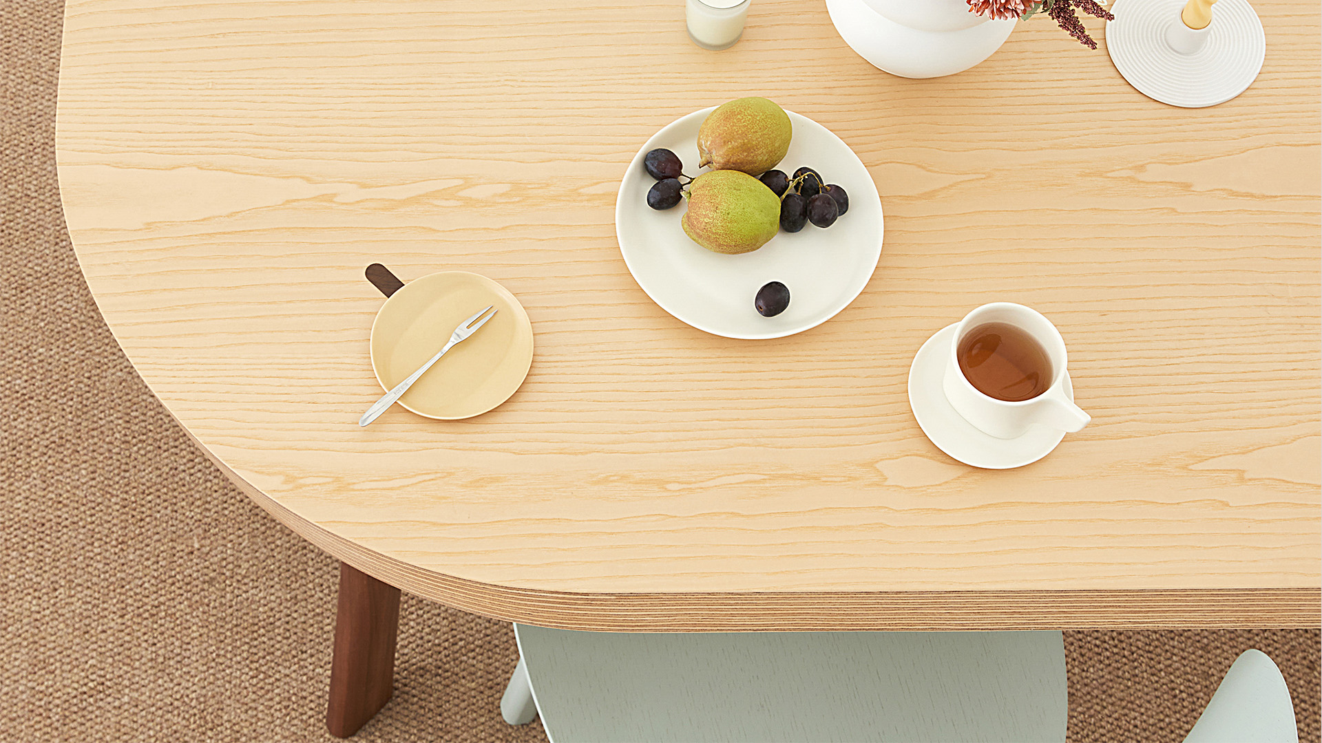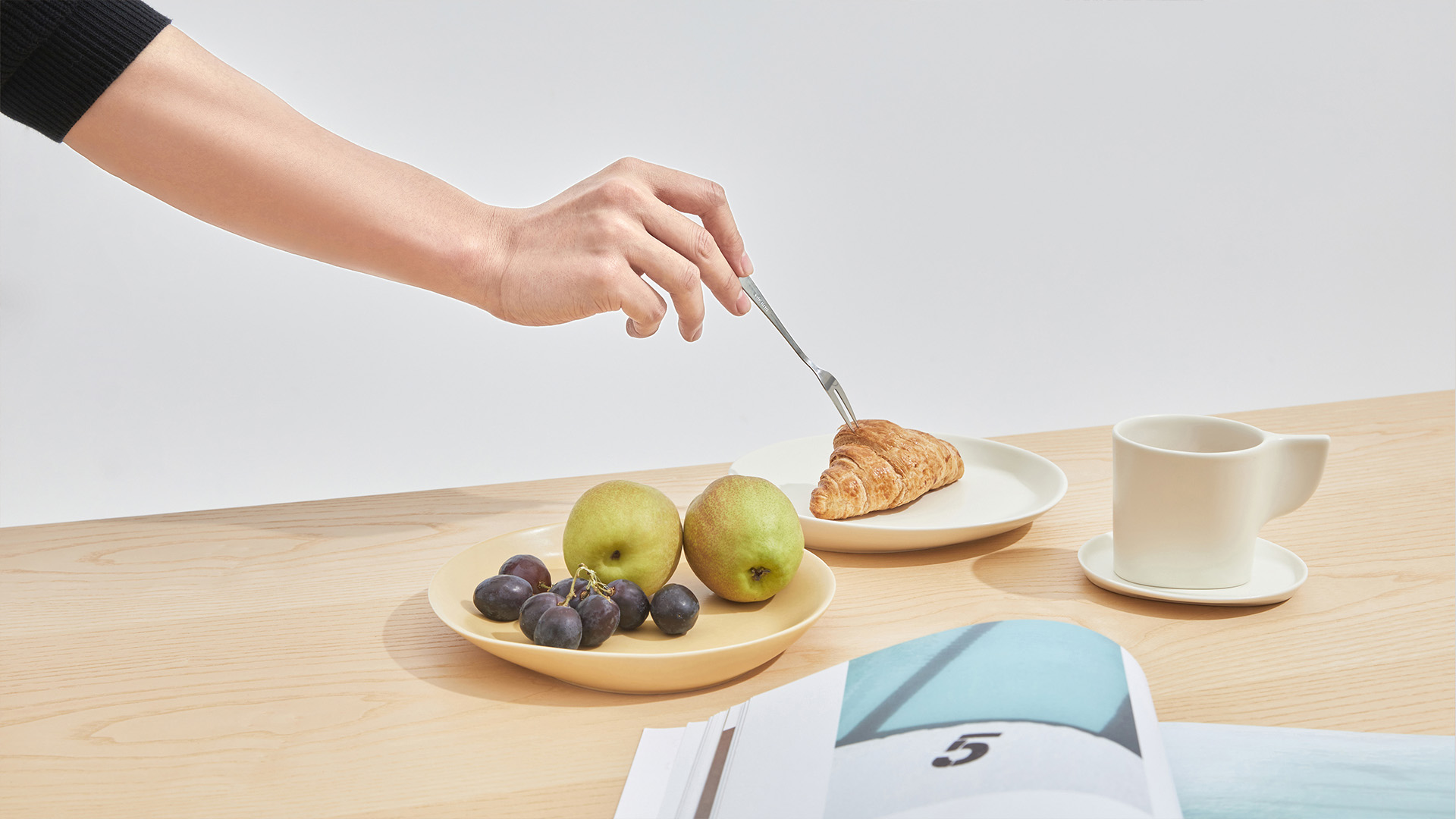 ZERO-0 系列是一个实验性的容器设计命题。玩转数学变化,展现了食器形态的无限可能。以近似0的椭圆为底面,正圆为顶面,沿着X轴和Y轴递增高度和直径,生成几何体的容器矩阵。再根据实际生活需要,选择合适的高度与体积,制作水具与餐具。这一形态打破了陶瓷容器固有的对称形态,对陶瓷进行工艺挑战。